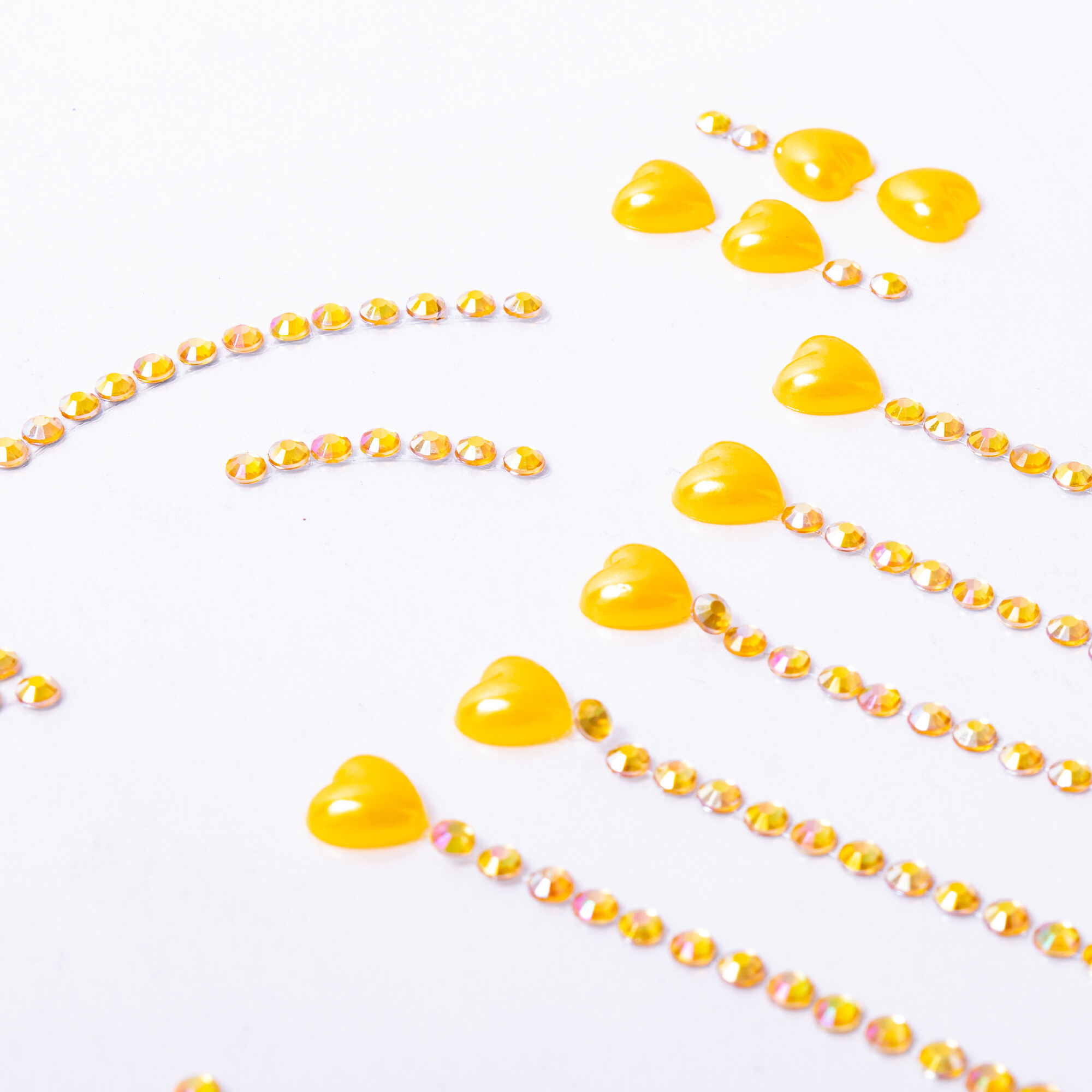 Using our pebbles is very simple. Simply peel them off the backing paper and stick them to the desired location. You can use them on your face, hair, nails, or any other part of your body. The stones stay firmly in place, yet they can be easily removed without damaging the skin or hair. Thanks to this, you can change your appearance according to your mood and the occasion.