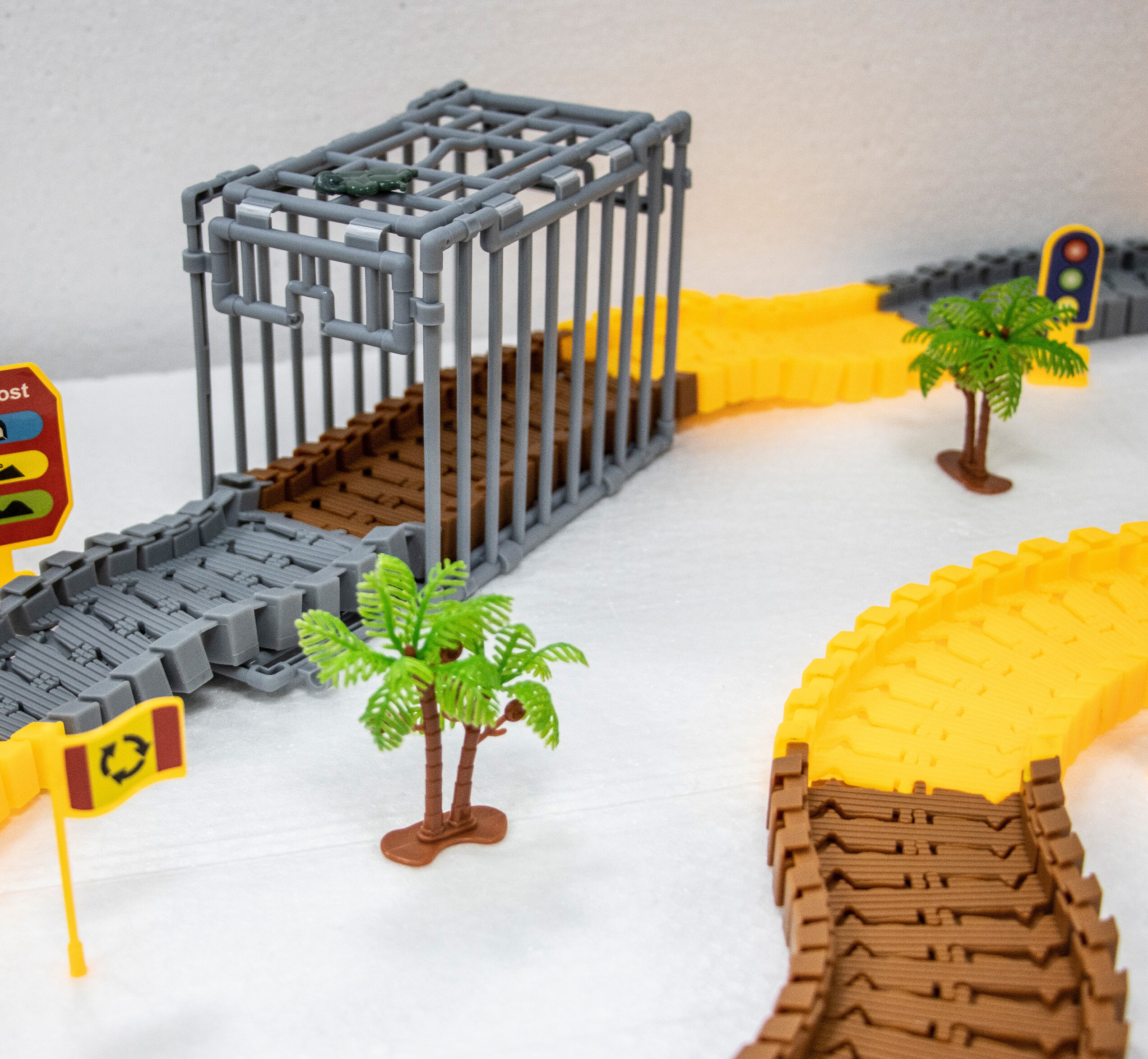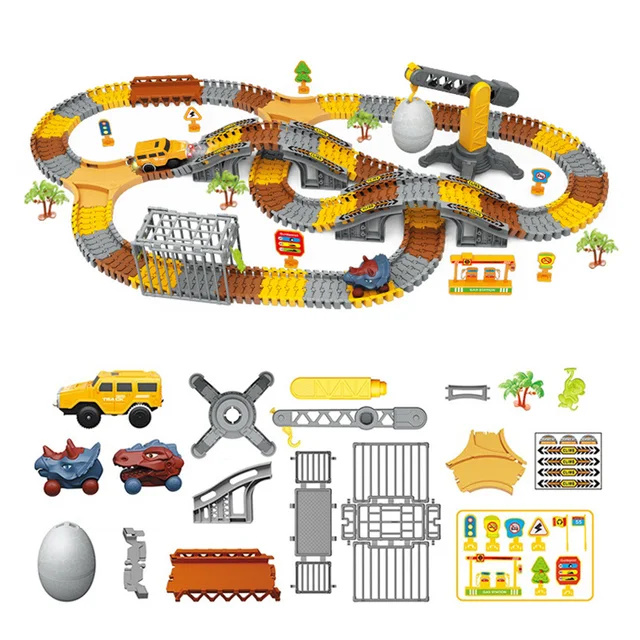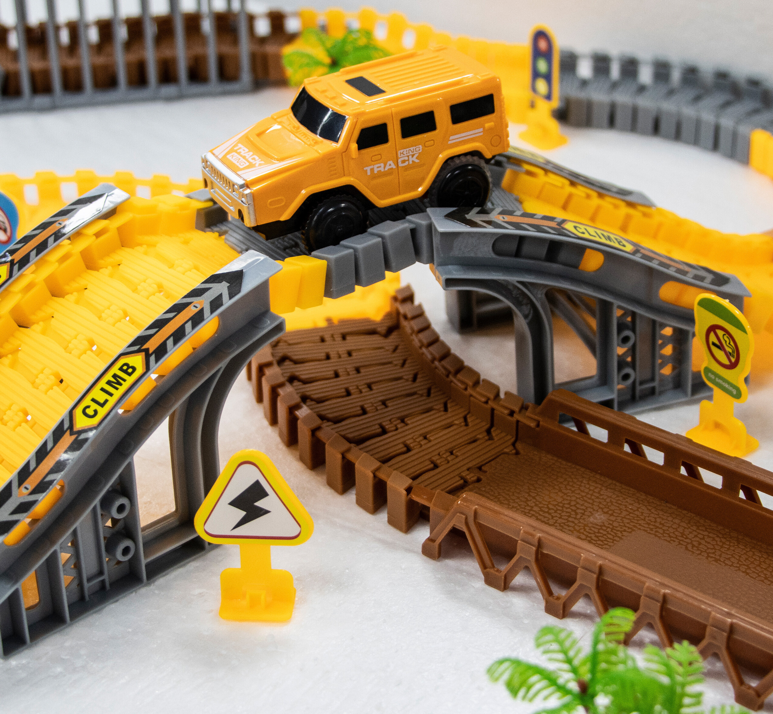 The racetrack can be shaped in any way, it all depends on your imagination.You can assemble the track together with your child in many different ways while helping them develop through play.