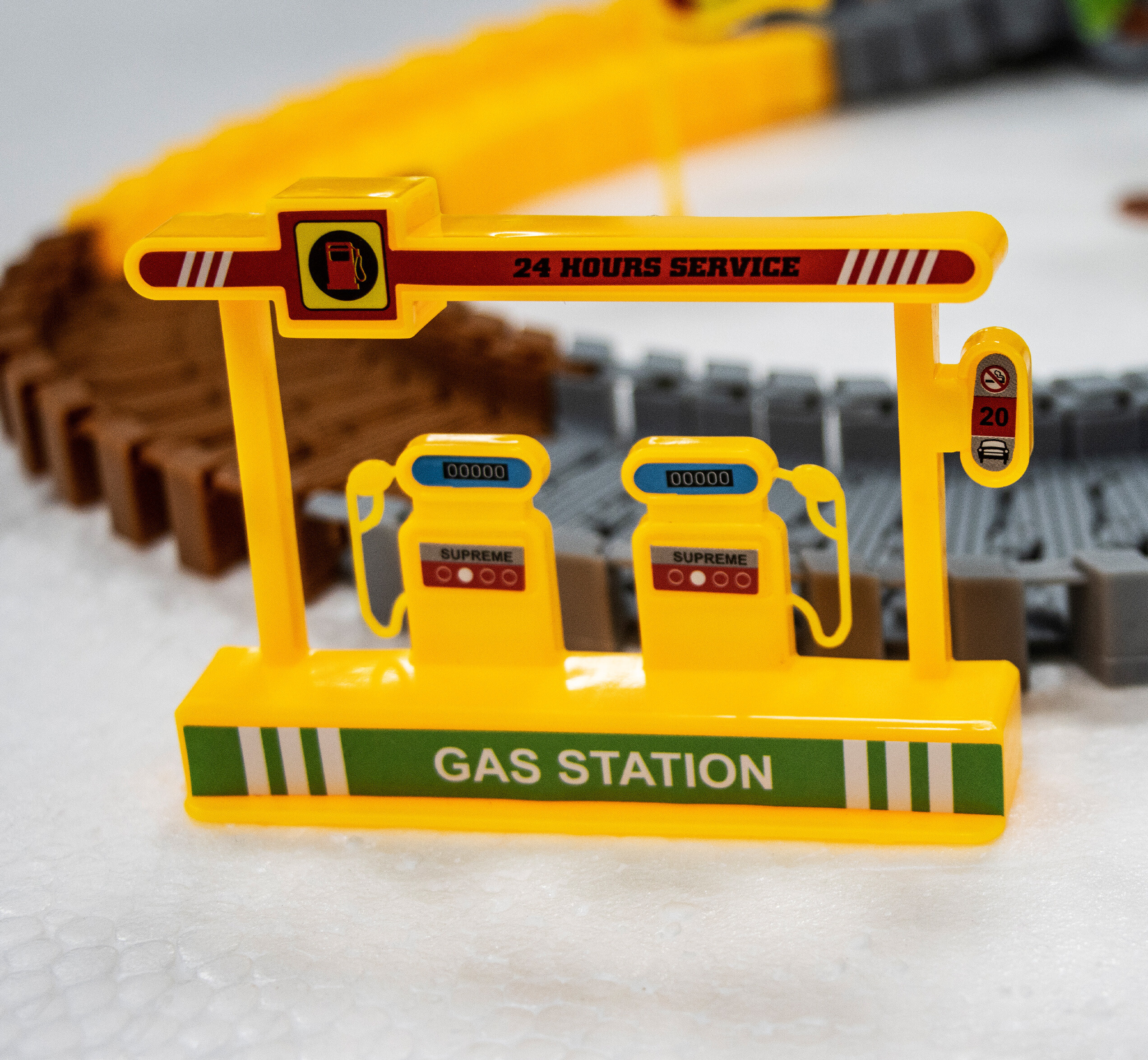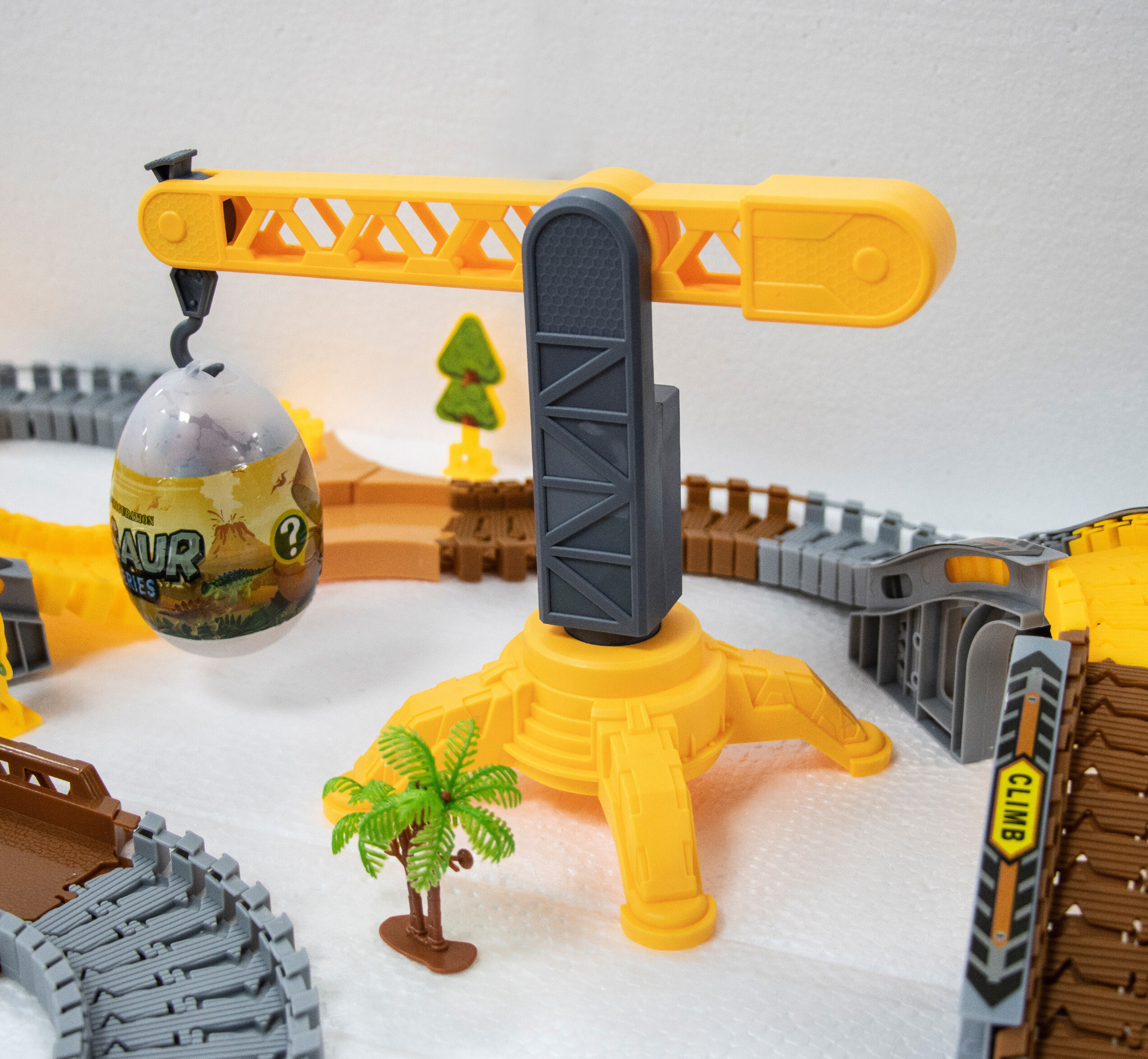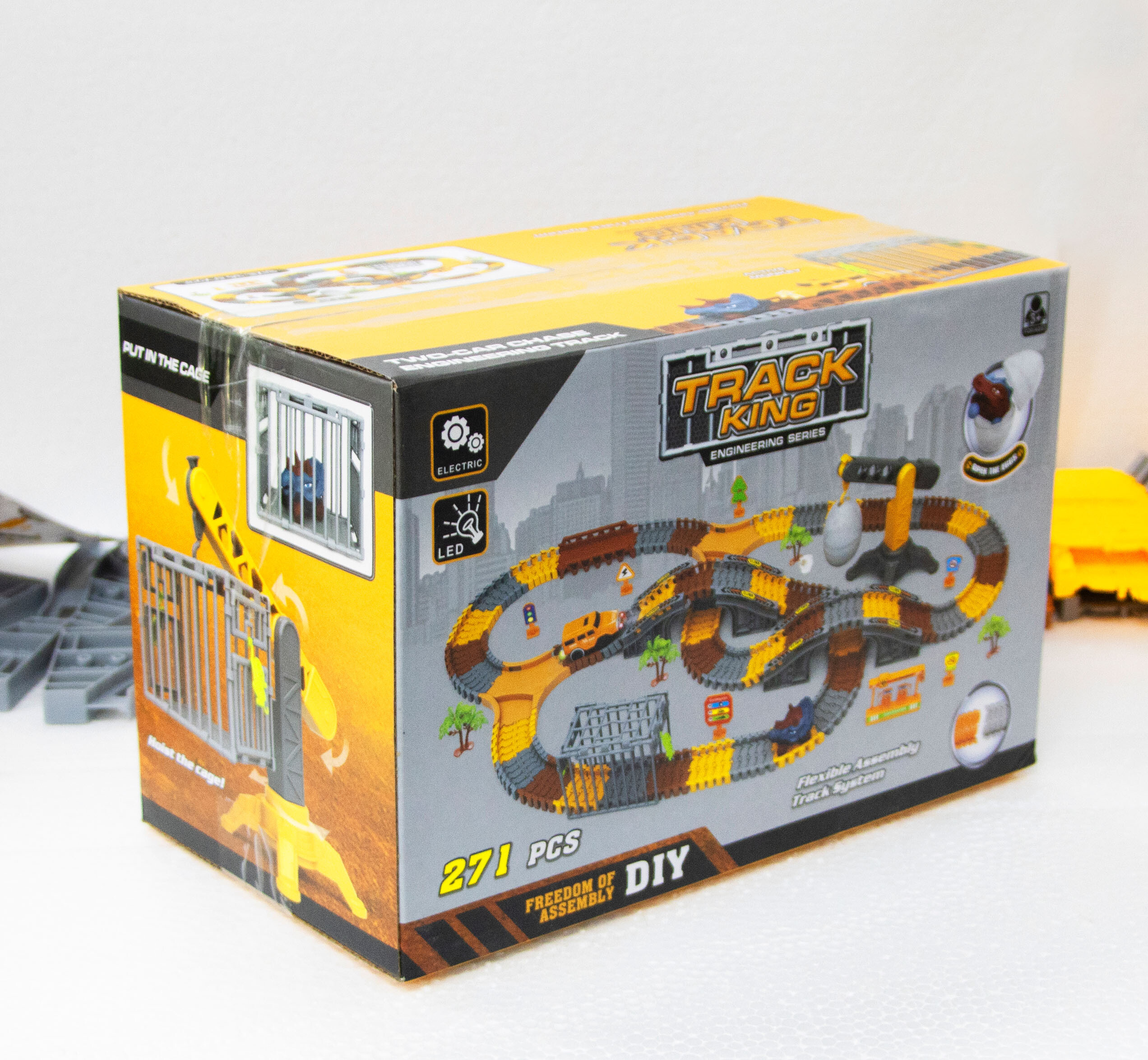 The racetrack can be shaped in any way, it all depends on your imagination.You can assemble the track together with your child in many different ways while helping them develop through play.