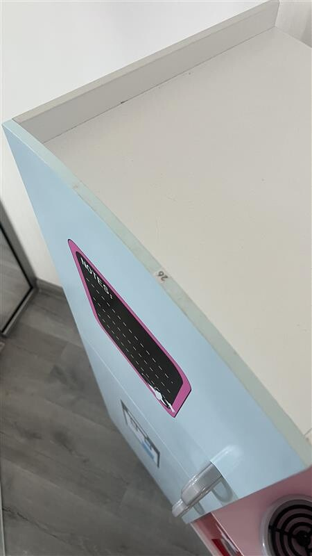 The kitchenette was assembled for photography purposes and is slightly damaged during transport, with minor scratches.