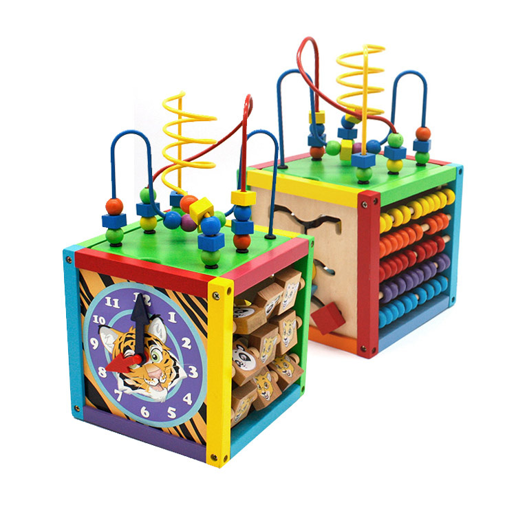 This colourful wooden interactive educational cube is a quality wooden toy for little hands.