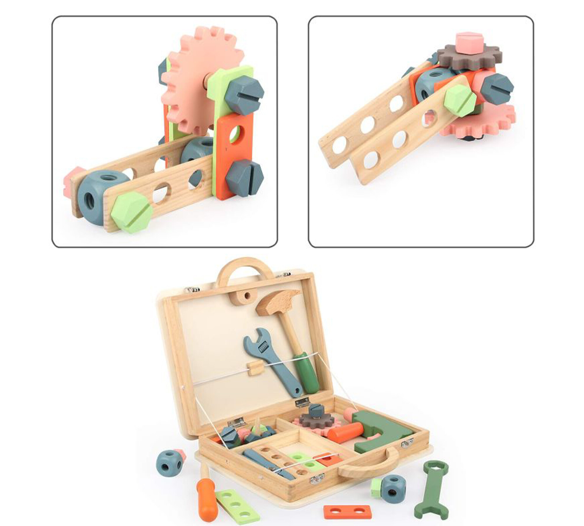 Aga4Kids wooden toolbox with tools is ideal for little DIY enthusiasts who want to develop their manual skills and imagination. With a rich set that includes a toolbox, tools, screws, nuts, and gears, your child can dive into the world of repairs and construction.