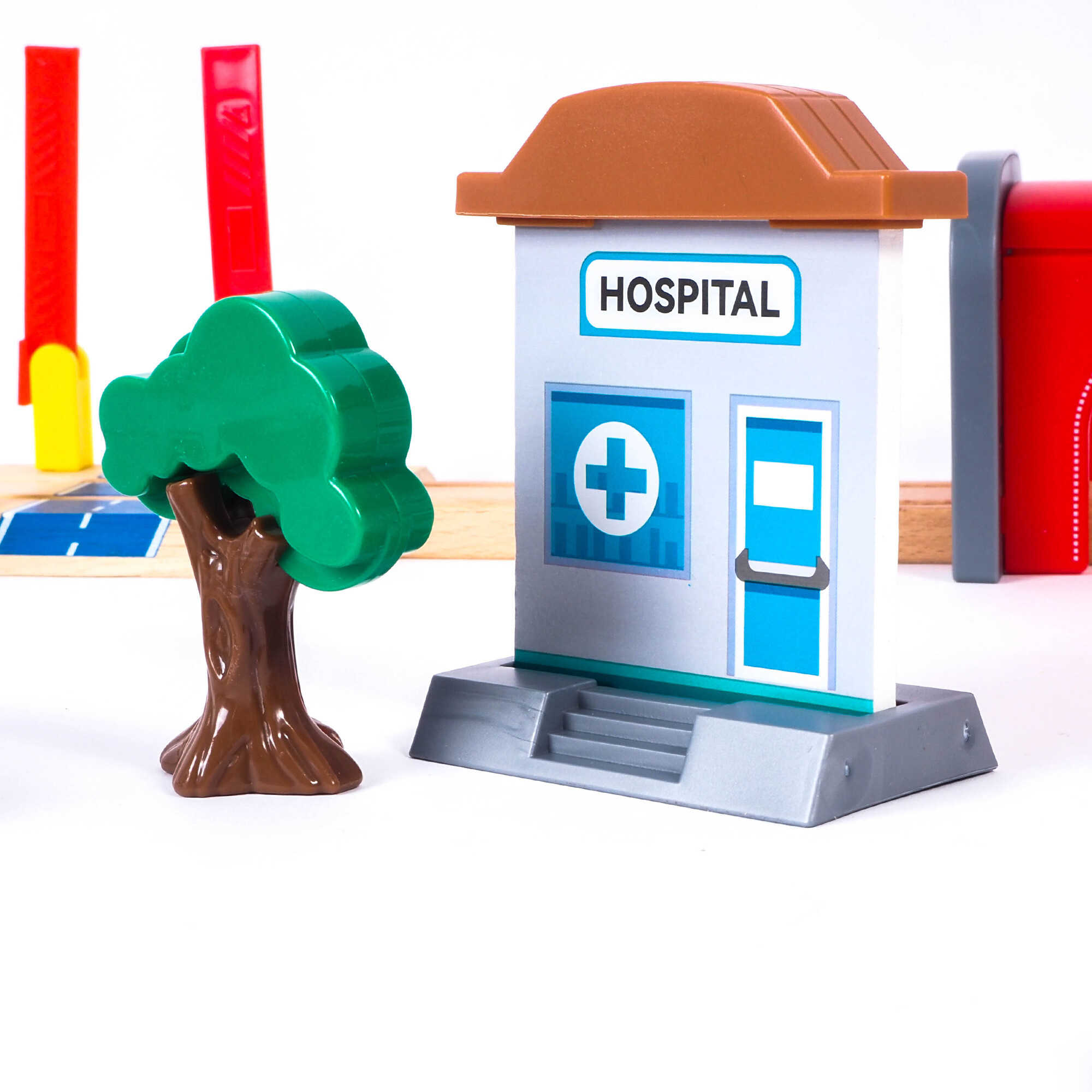 Wooden train set with rich accessories from Aga4Kids. Full description