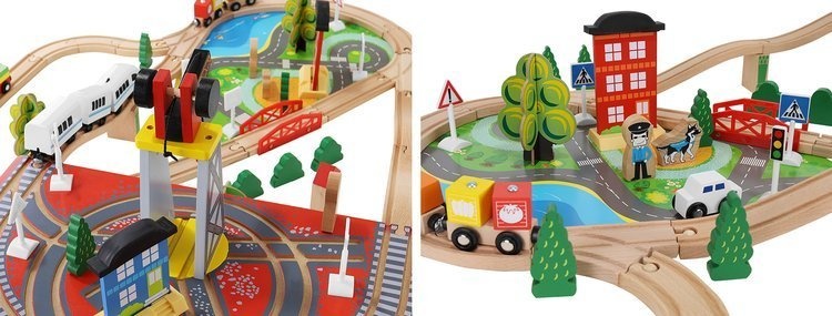 Wooden train track with many accessories from Aga4Kids.