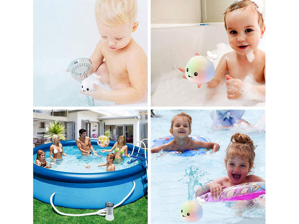 A whale with a cheerful face encourages playfulness in the water and makes swimming fun and enjoyable. It can also be useful as an incentive for those who do not like to bathe every day.