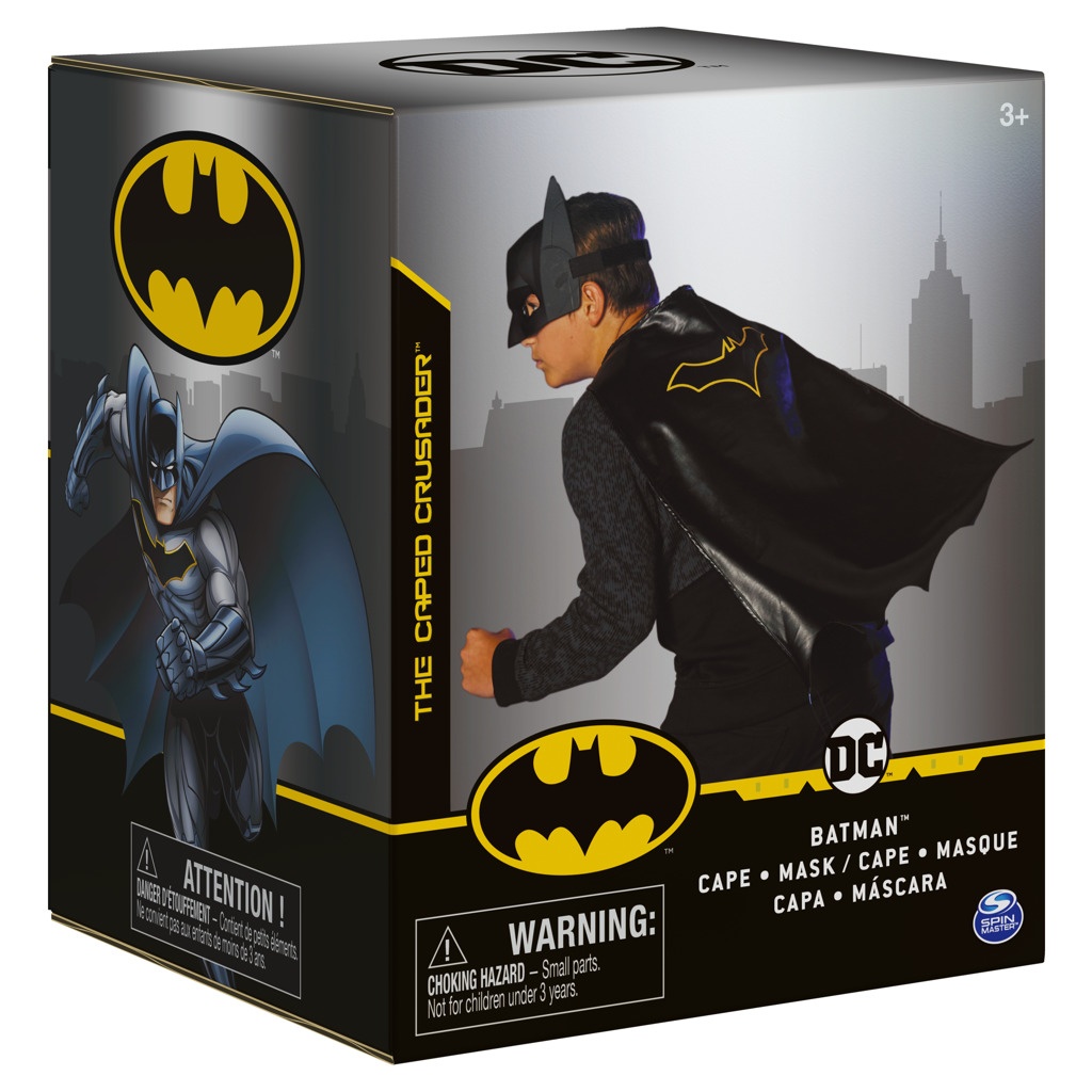 Be a unique BATMAN hero with the Cloak and Mask Play Set. The disguise set includes a realistically shaped Batman mask and a cape made of high quality fabric with the iconic Batman symbol. Batman's classic armor is easy to put on and perfect for playing in disguise any time of day. The Batman mask and cape is a great gift for fans 4 years and up.