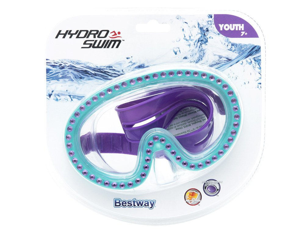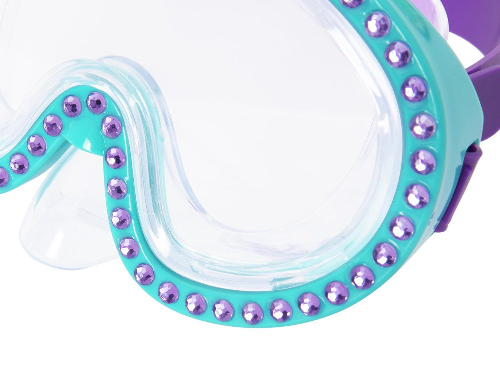 The fully adjustable head strap and double-sealed collar guarantee optimum comfort during use. In addition, the glasses have lenses with a polycarbonate UV filter. The whole is decorated with glittering, embedded glittering stones. The glasses are designed for children from 7 years of age. The strap allows full adjustment so that the mask adapts perfectly to the child's head.