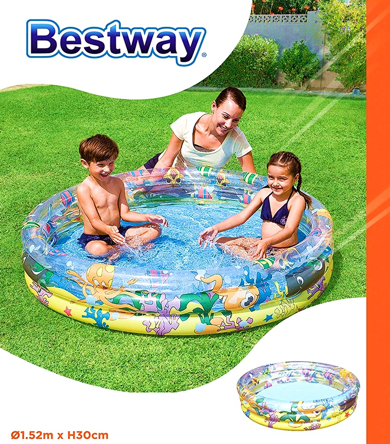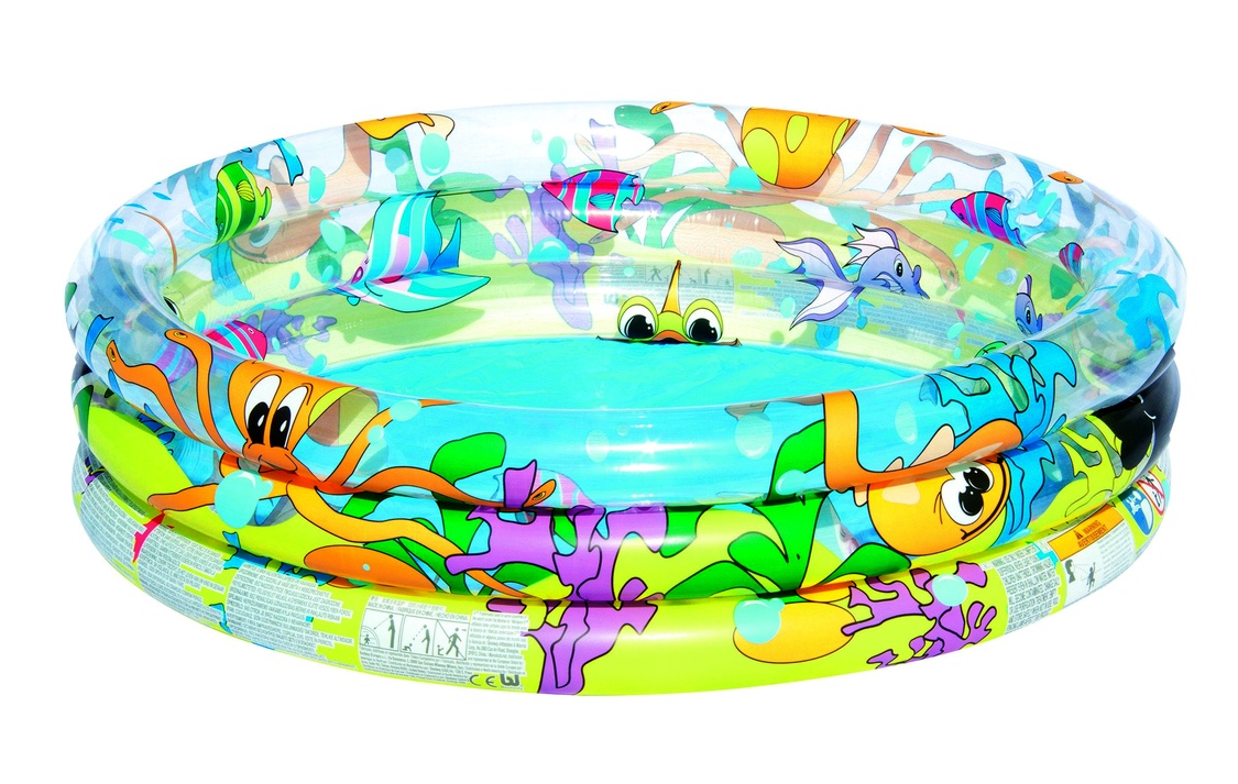 Inflatable children's swimming pool Ocean Life from Italian company Bestway, printed with sea world. The pool consists of three separately inflatable rings, which are secured against unwanted air leakage.