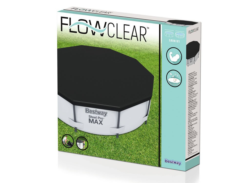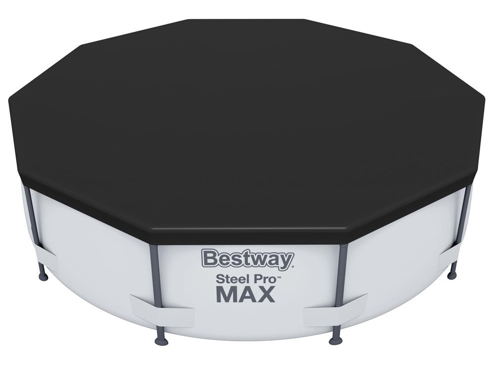 The305 cm pool cover from Bestway is suitable for all pools with a metal structure with a similar diameter.