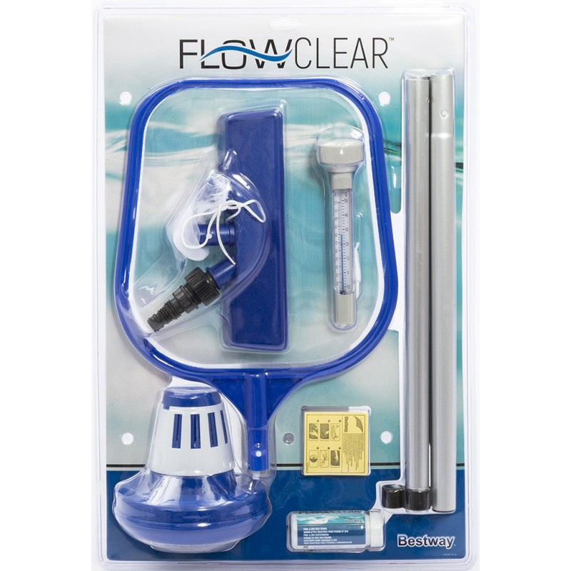 The kit contains everything you need to maintain your pool.