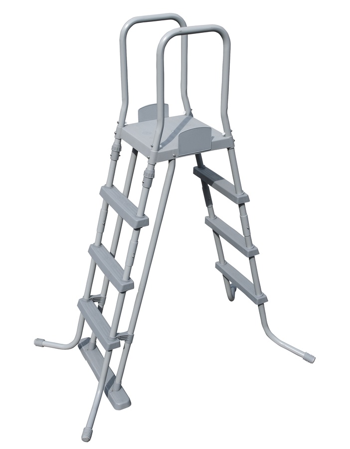 Above ground family swimming pool with metal construction from the renowned Italian company Bestway is equipped with complete accessories including cartridge filtration and pool steps.