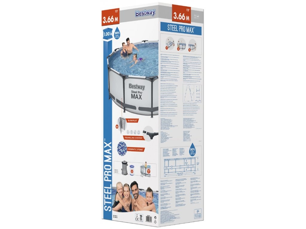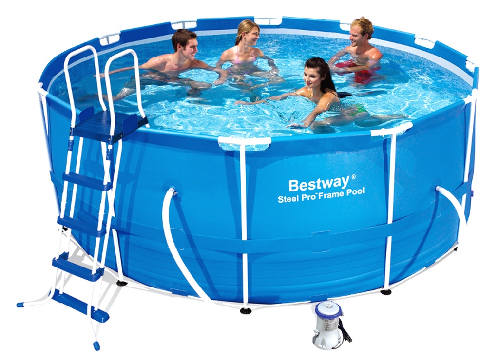 Above ground family garden pool from the renowned Italian company Bestway, with foldable metal structure and cartridge filtration. Just assemble the metal structure and fill the pool with water.