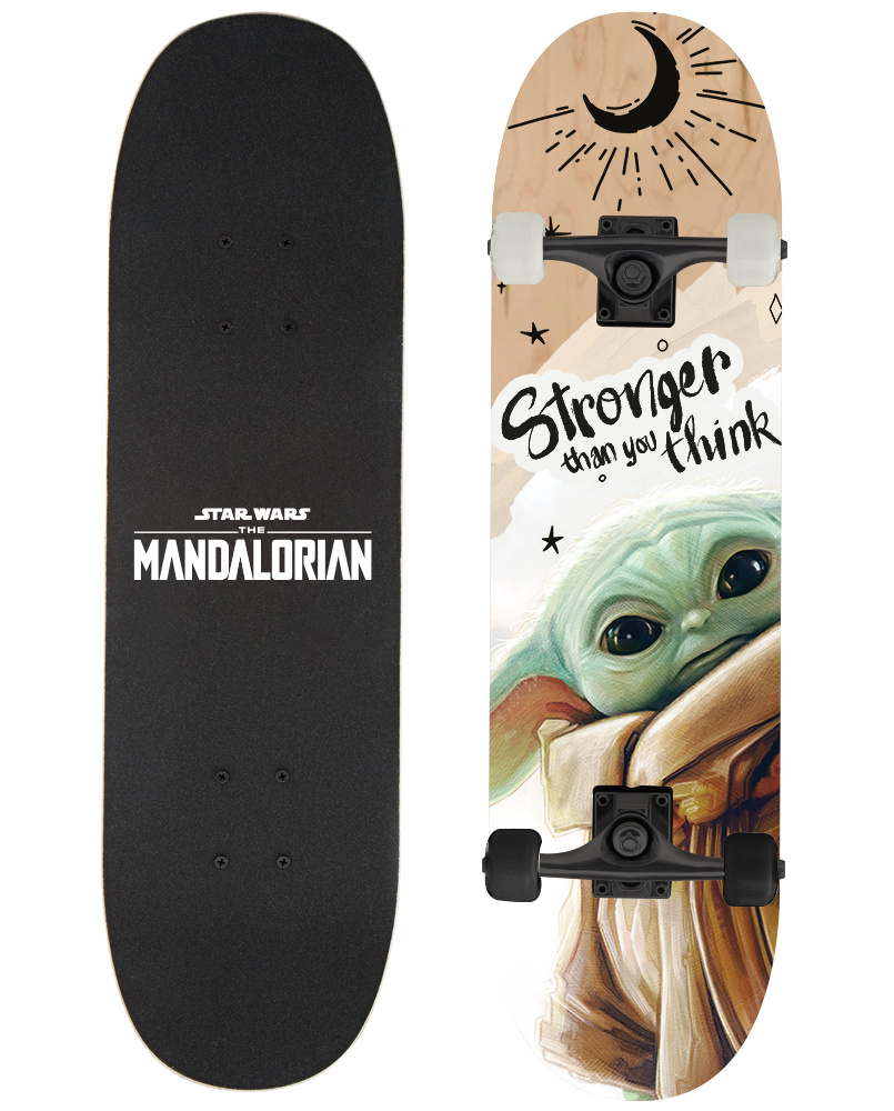 A wooden skateboard decorated with trendy Star Wars patterns. It is ideal to use on pavements, squares and urban alleys. The board is made of durable wood and has a non-slip surface that provides traction and increases safety.
