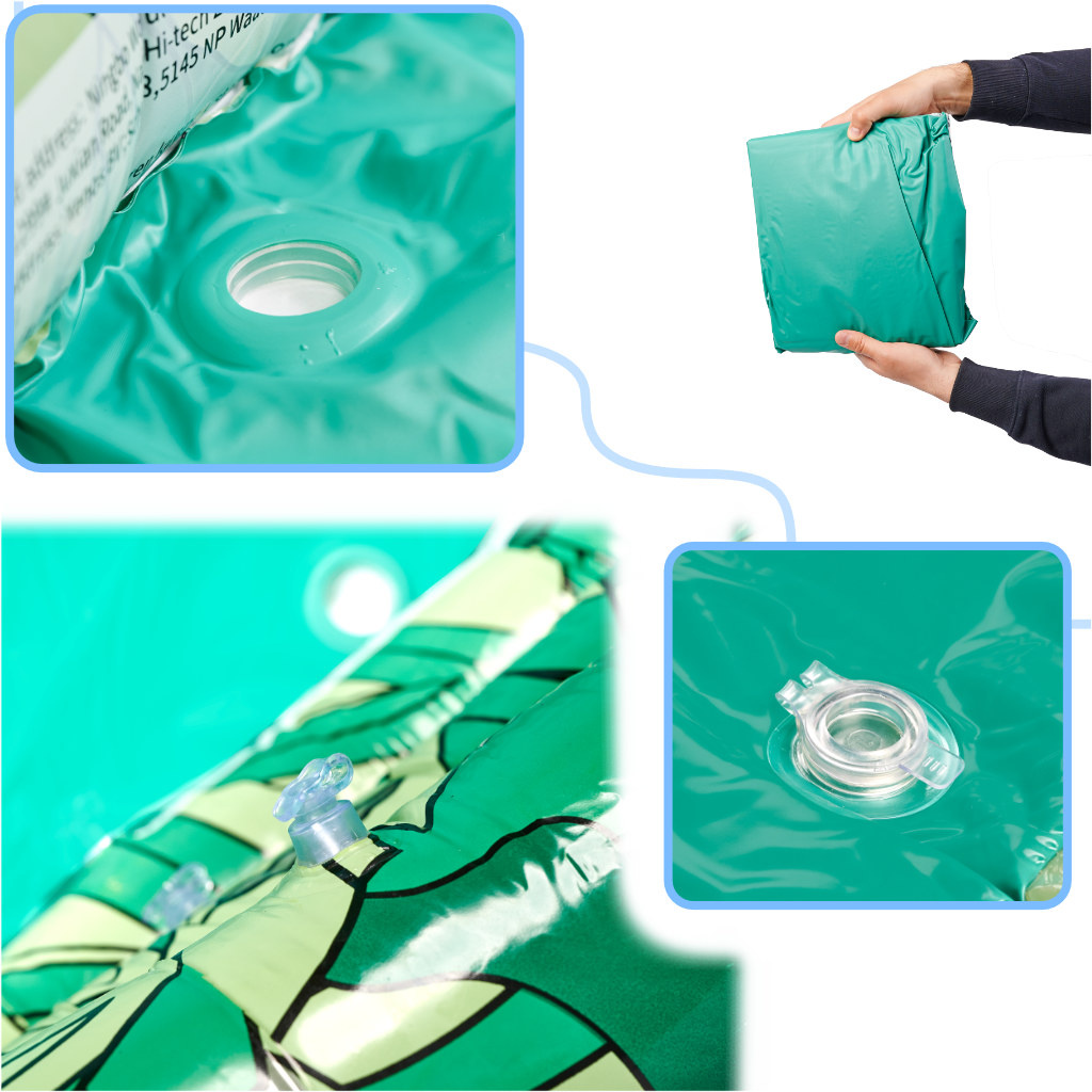 Sealed valves, which would prevent air from escaping the inflated chambers, were also considered. And above all, the product was made from high-quality materials that are not only durable but also completely safe for contact with children's skin!