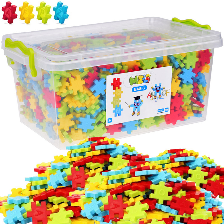 WAFLE Blocks Meli Basic Letters 1200 pieces are an offer for every child.Vibrant colors and up to 1200 elements with letters in the package will delight young explorers and builders. Creative play is a challenge for young children, but also an invitation for parents to collaborate, to realize children's ideas together while learning letters and word formation. Anything that imagination suggests can be built :).Simple puzzle-like shapes allow for the creation of any forms, both flat and spatial.The blocks connect very easily, are pleasant to the touch, and have nice colors. The small dimensions of easily connectable elements in pleasant colors make it hard to tear yourself away from them! A fun game can last for long hours, the BASIC series can be combined by purchasing additional sets, thus expanding the construction possibilities for young enthusiasts of creative entertainment!Look at how much joy a toy can bring that simultaneously develops the senses and supports a child's development!