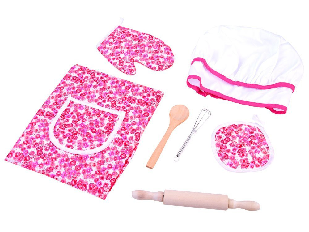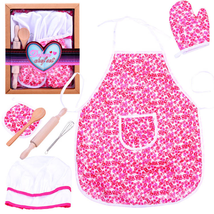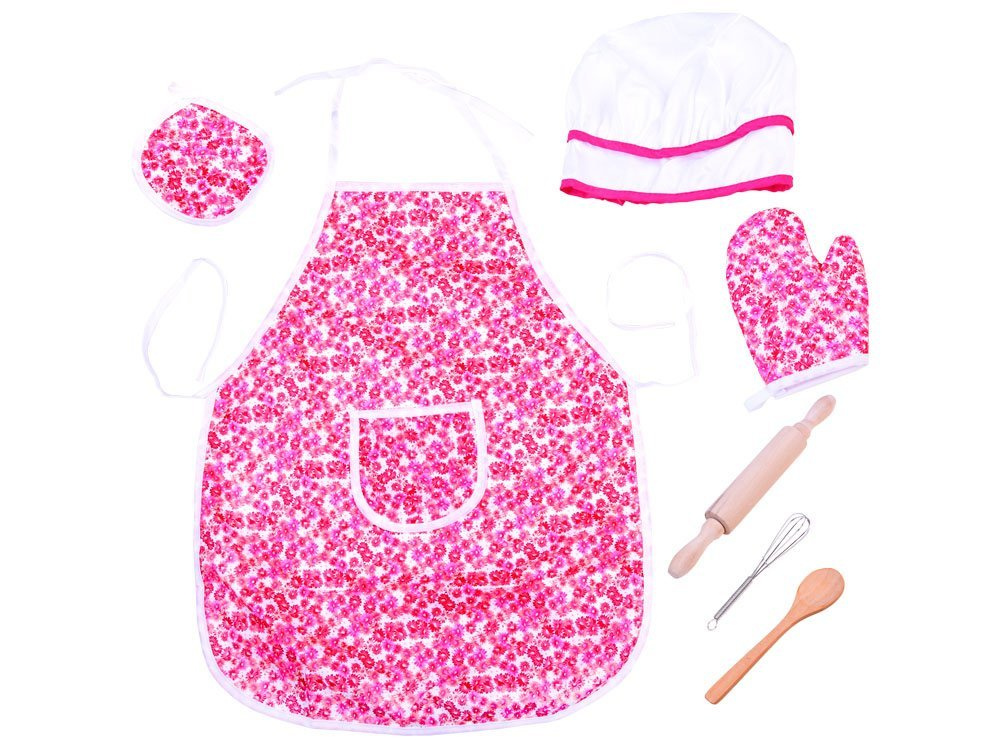 Almost every child likes to help their parents in the kitchen - stirring, adding ingredients, whisking the mixture. It only takes a moment of inattention and a stain on clean clothes is done. That is why a kitchen apron is indispensable in such situations. Beautiful apron with pink flowers will perfectly protect your clothes from getting dirty.It is also a great addition to any children's kitchen set.