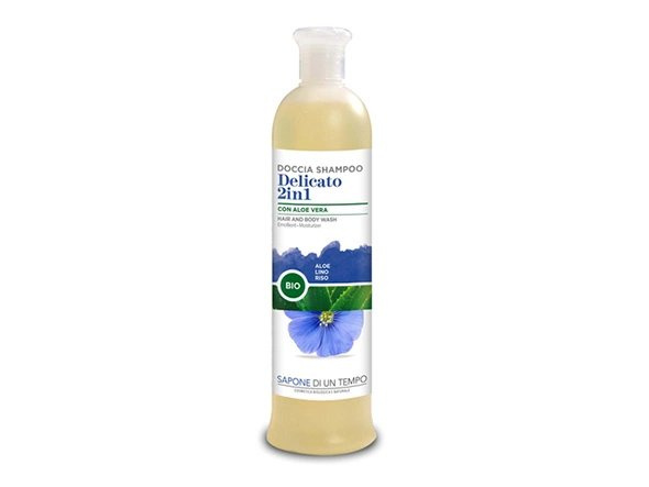 The gentle 2-in-1 liquid body and hair wash by Sapone di un Tempo is designed for daily use.
