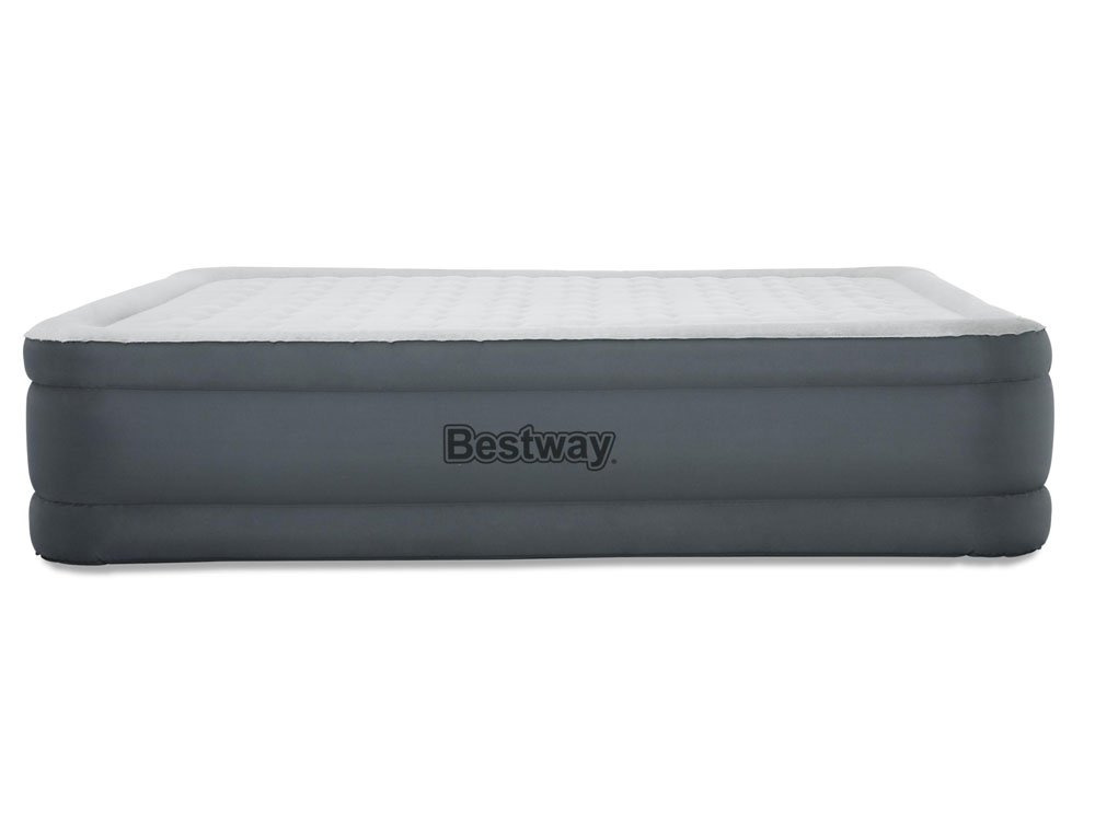 Thecomfortable Bestway two-person mattress with dimensions 203 cm x 152 cm x 46 cm easily provides a comfortable rest for two people. The inflatable bed with built-in pump will come in handy for visiting, camping, relaxing on the terrace or in the garden. The inflatable bed has a built-in pump, so pumping is very fast (the mattress also has the option of pumping with a regular pump in case of a power outage). The stable construction of the mattress is ensured by the Wave Beam frame.Bestway mattresses use advanced Wave-beam technology, which is based on connecting the bottom and top surfaces of the mattress with horizontal strips. The upper part of the mattress is covered with a material that is soft to the touch but durable at the same time.