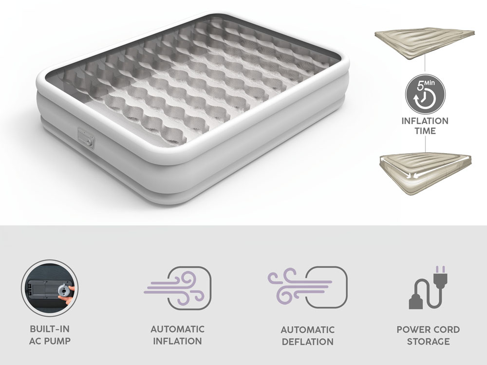 - thanks to the built-in electric pump, the mattress inflates in just 3 minutes