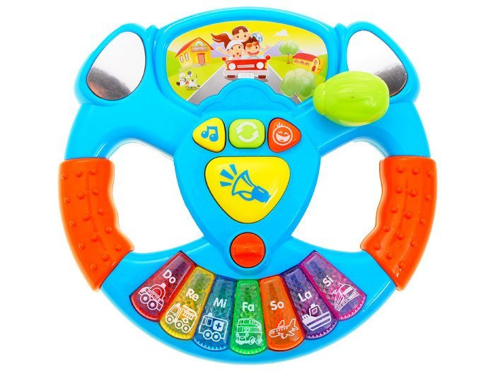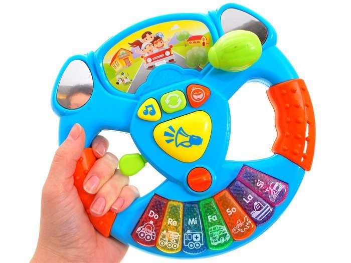 The interactive steering wheel is a great toy for children to play with when travelling in the car or playing driver.