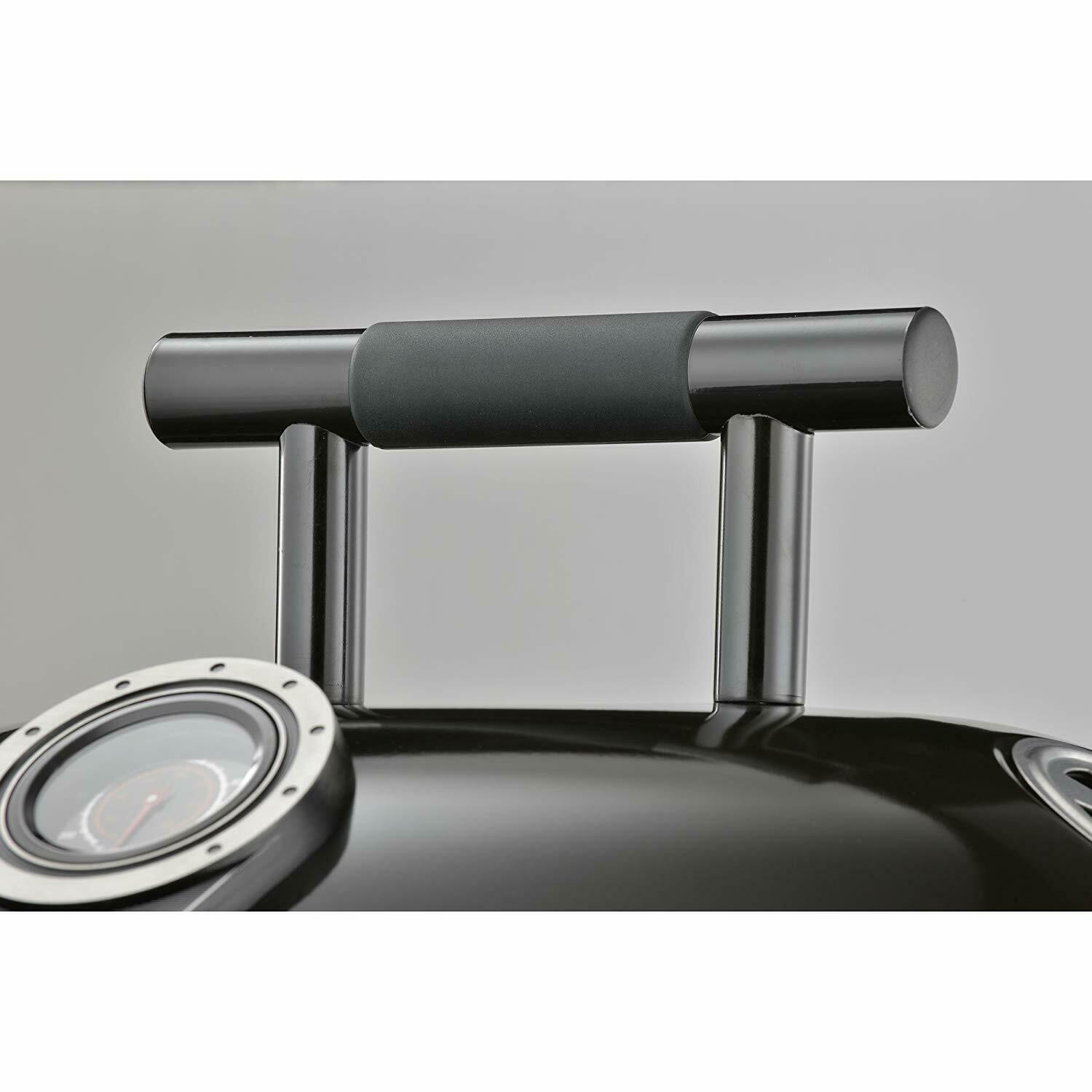 Lid with extra large thermometer, compartment for storing grill tools. Removable centre ring, which can be used to raise the grill area or as a windbreak.
