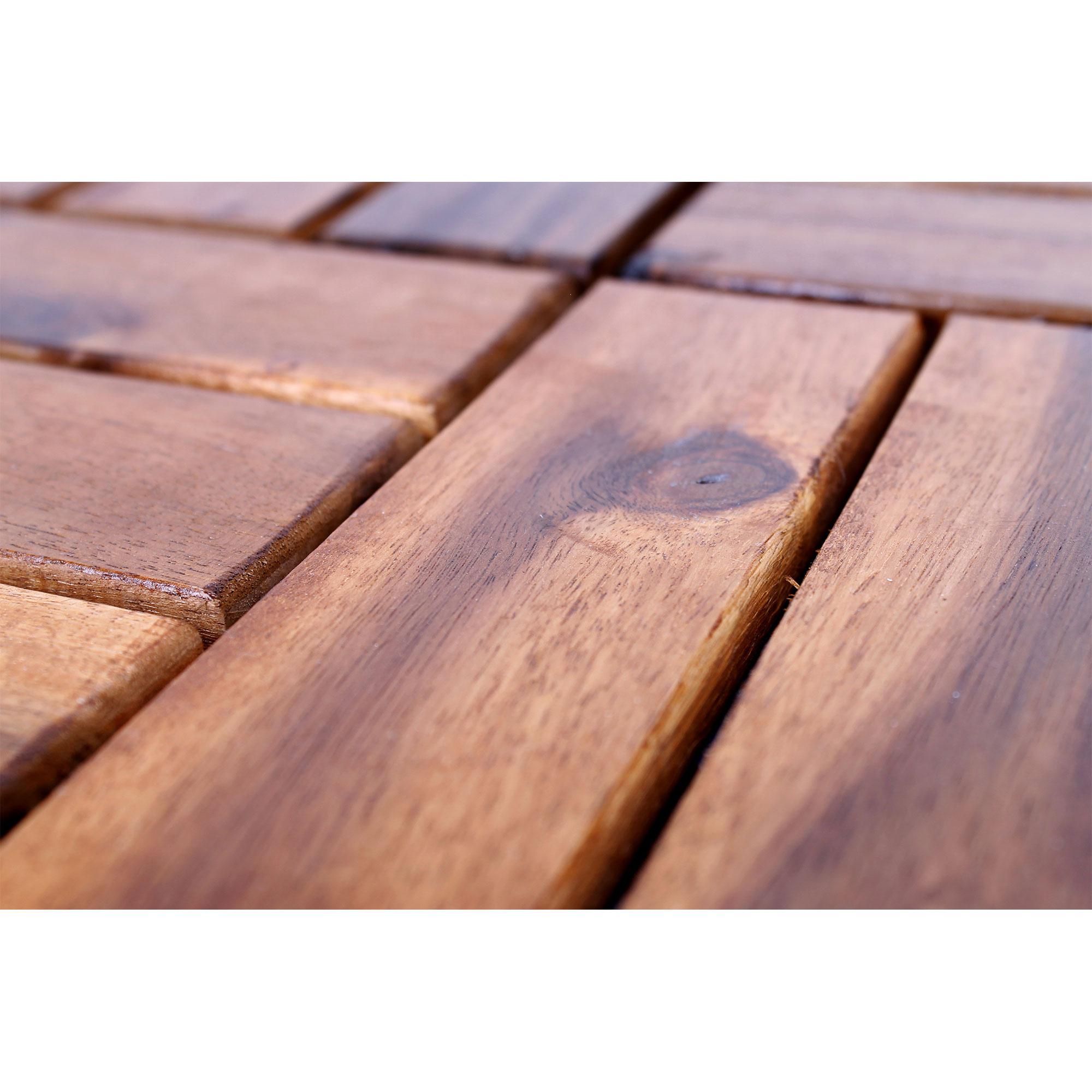 Floor tiles are made from high-quality acacia wood, which is a tropical hardwood that is weather-resistant and has a long lifespan.