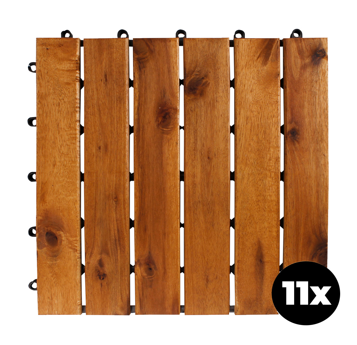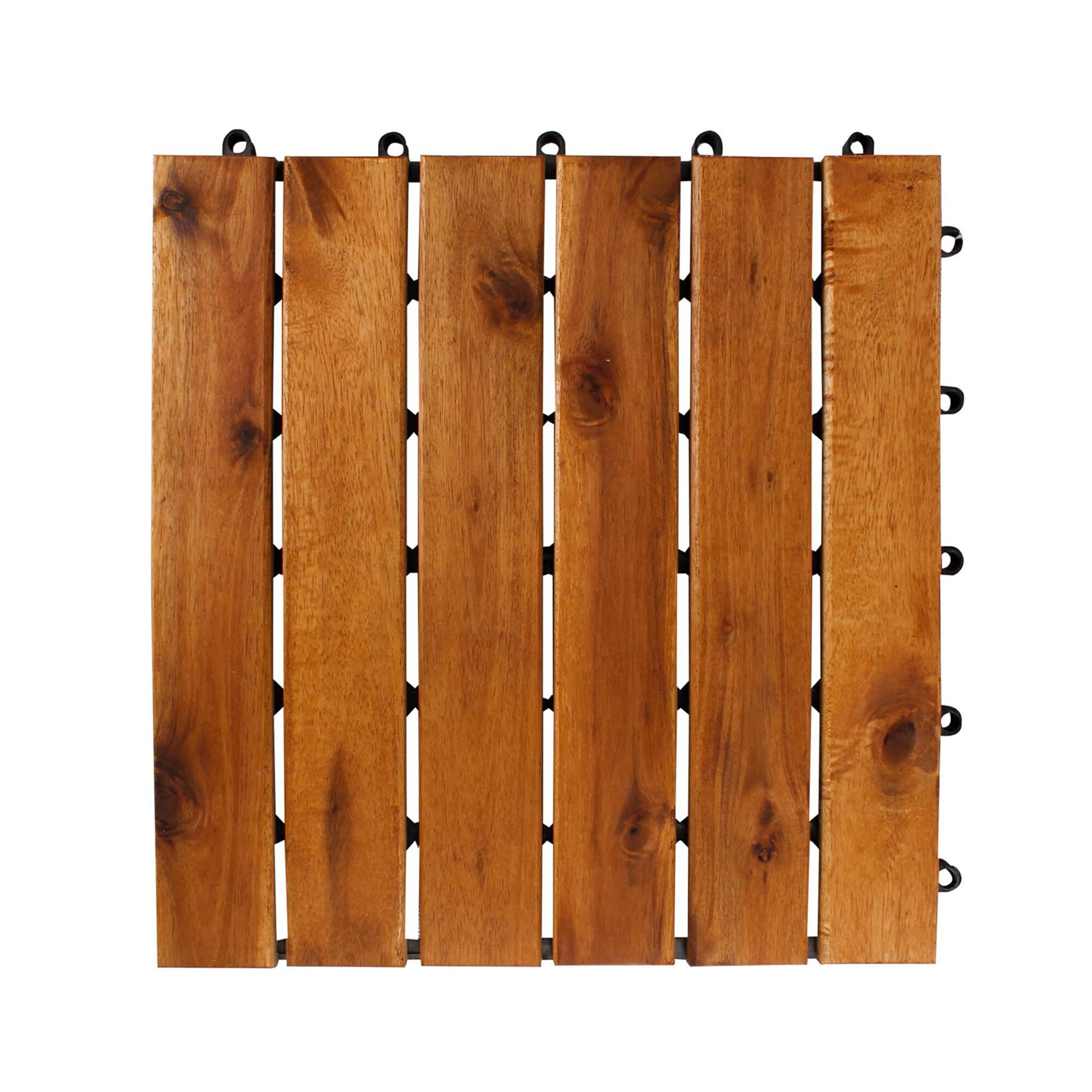 Floor tiles are made from high-quality acacia wood, which is a tropical hardwood that is weather-resistant and has a long lifespan.