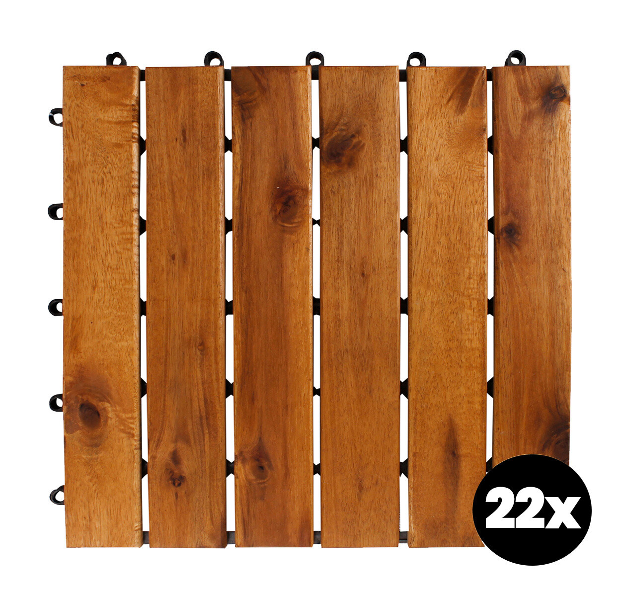 Floor tiles are made from high-quality acacia wood, which is a tropical hardwood that is weather-resistant and has a long lifespan.