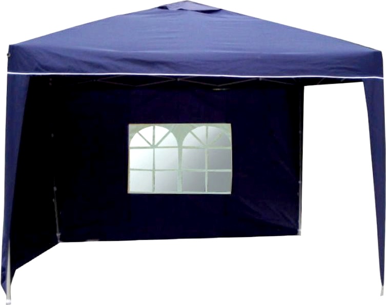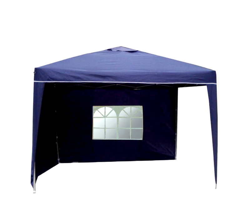 Garden gazebo equipped with a quick-folding scissor structure and two side waterproof walls with one window.