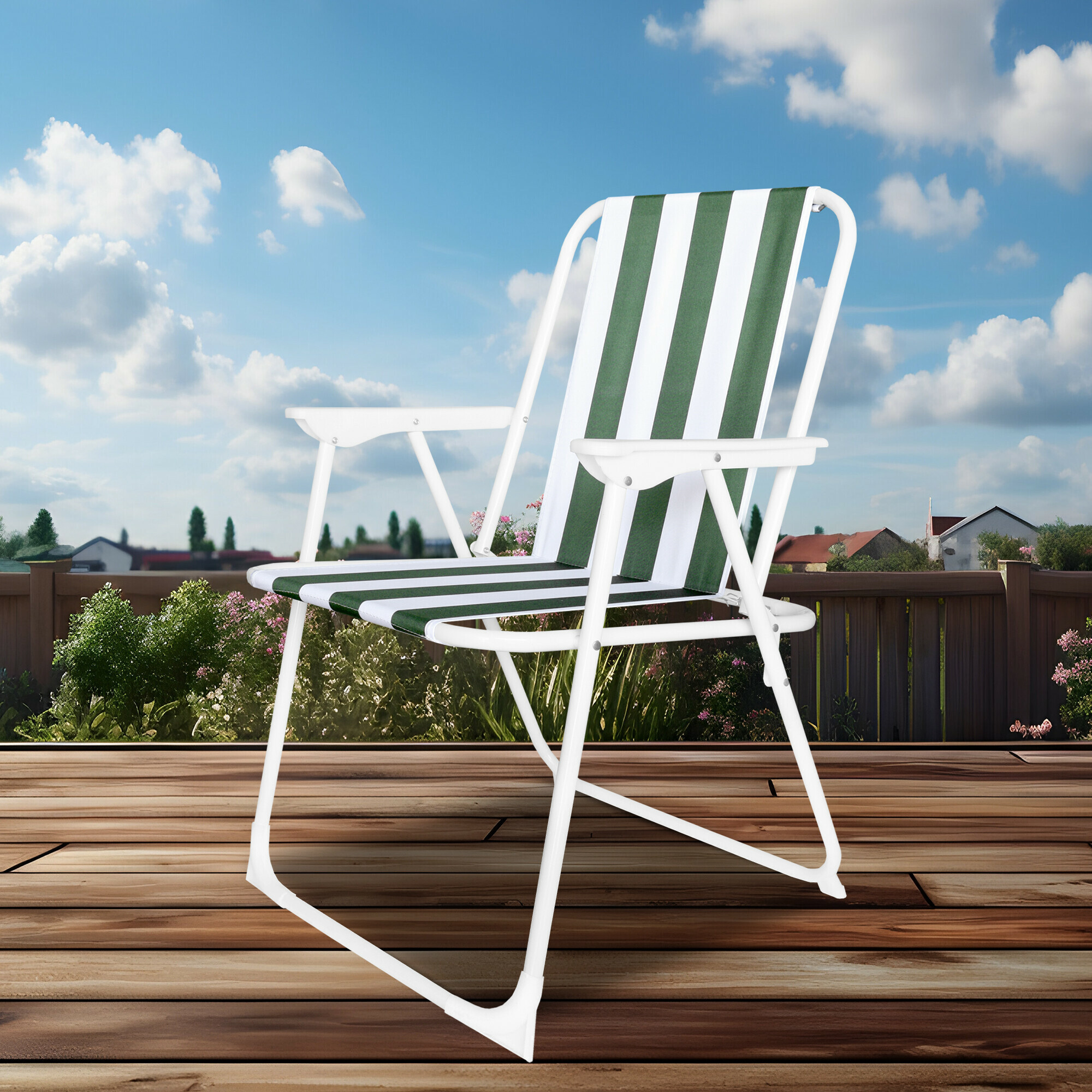 Folding garden chair with comfortable armrests, ideal for camping, but it will surely find its use among fishermen, modelers, and cottage owners.