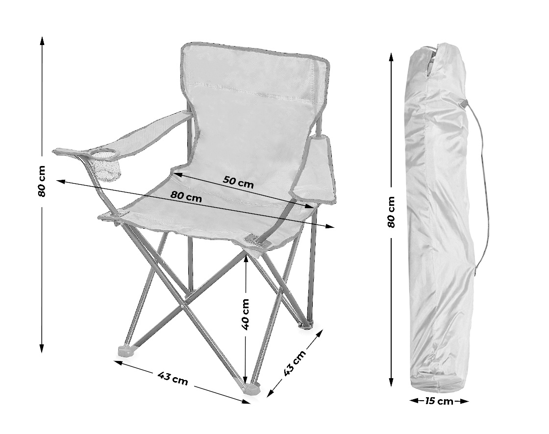 Folding garden chair with comfortable armrests, ideal for camping, but will also find its use among fishermen and modelers.
