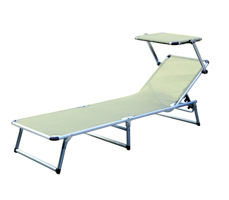 Folding garden deckchair with canopy and reinforced aluminium structure, in a modern design, suitable for gardens, camping or beaches.