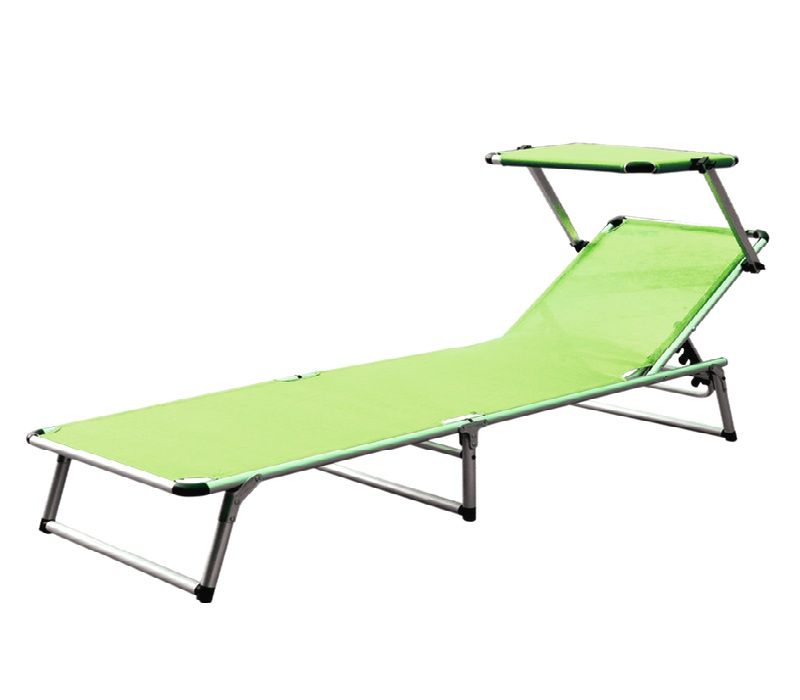 Folding garden deckchair with canopy and reinforced aluminium structure, in a modern design, suitable for gardens, camping or beaches.
