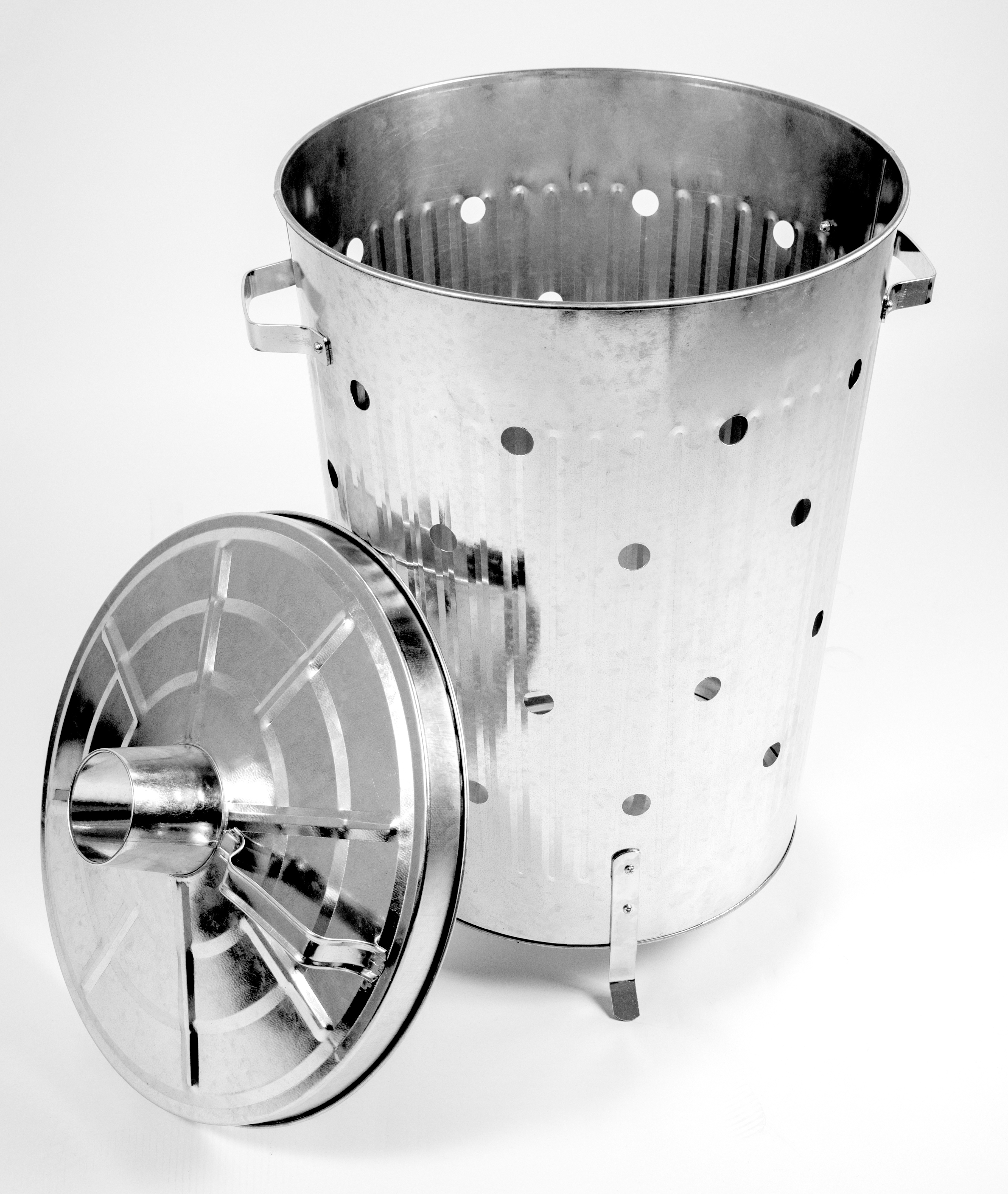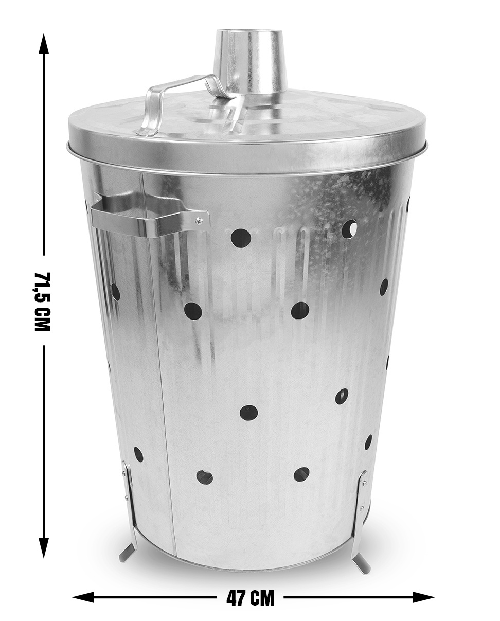 The Linder Exclusiv garden incinerator is made from galvanized steel and is perfect for burning garden waste. The incinerator is equipped with a lid with a handle and ventilation openings that ensure perfect combustion.
