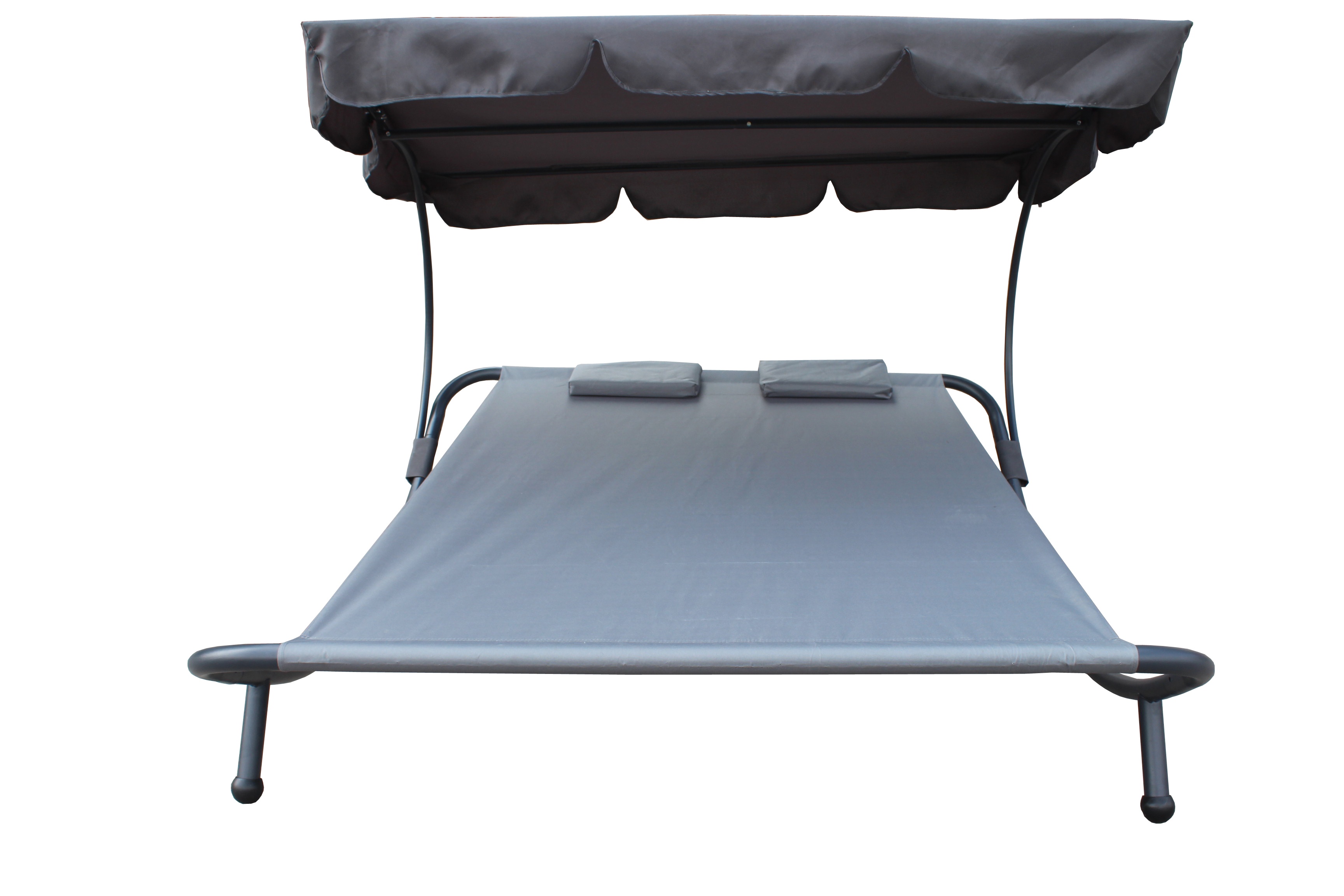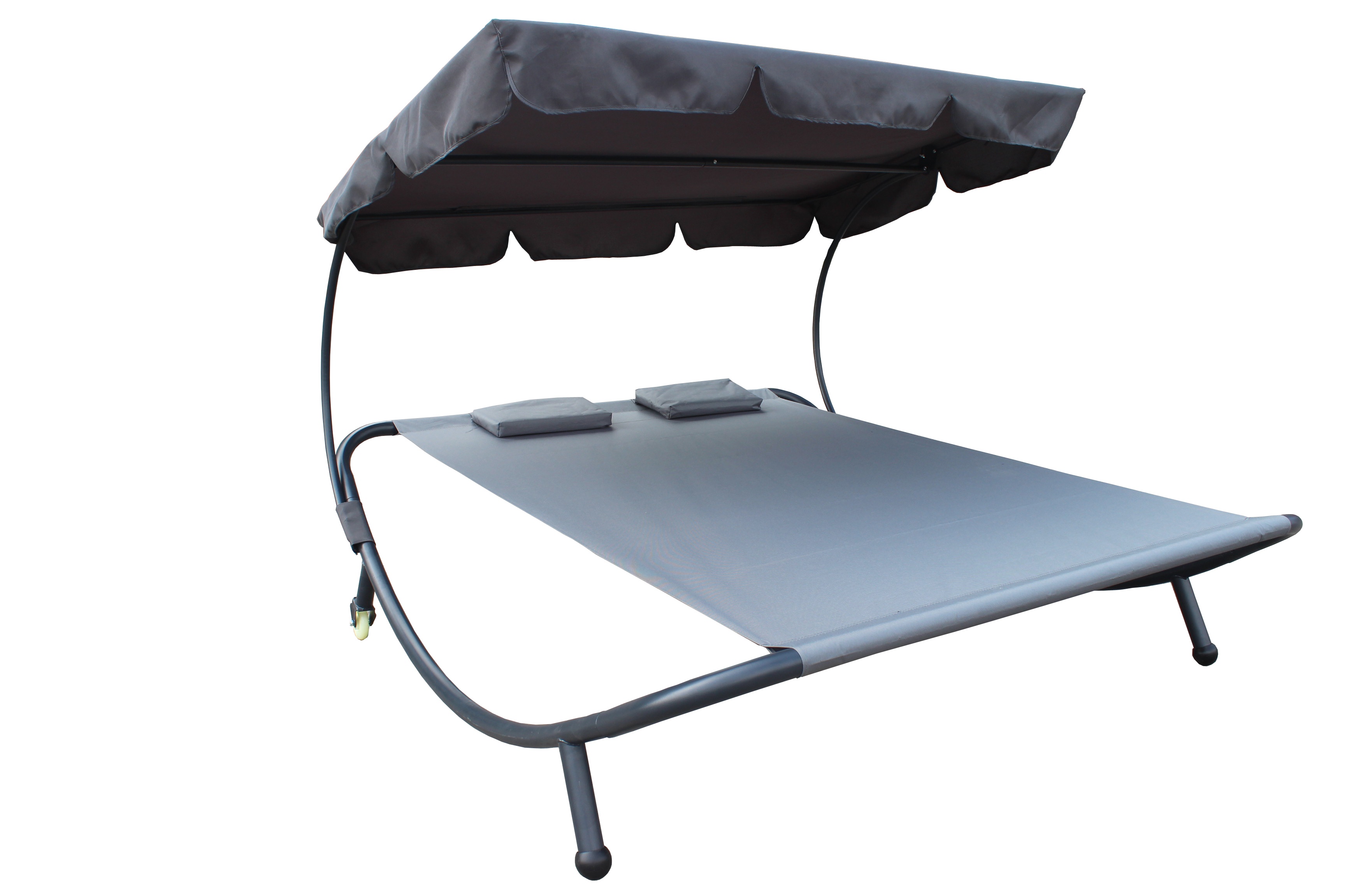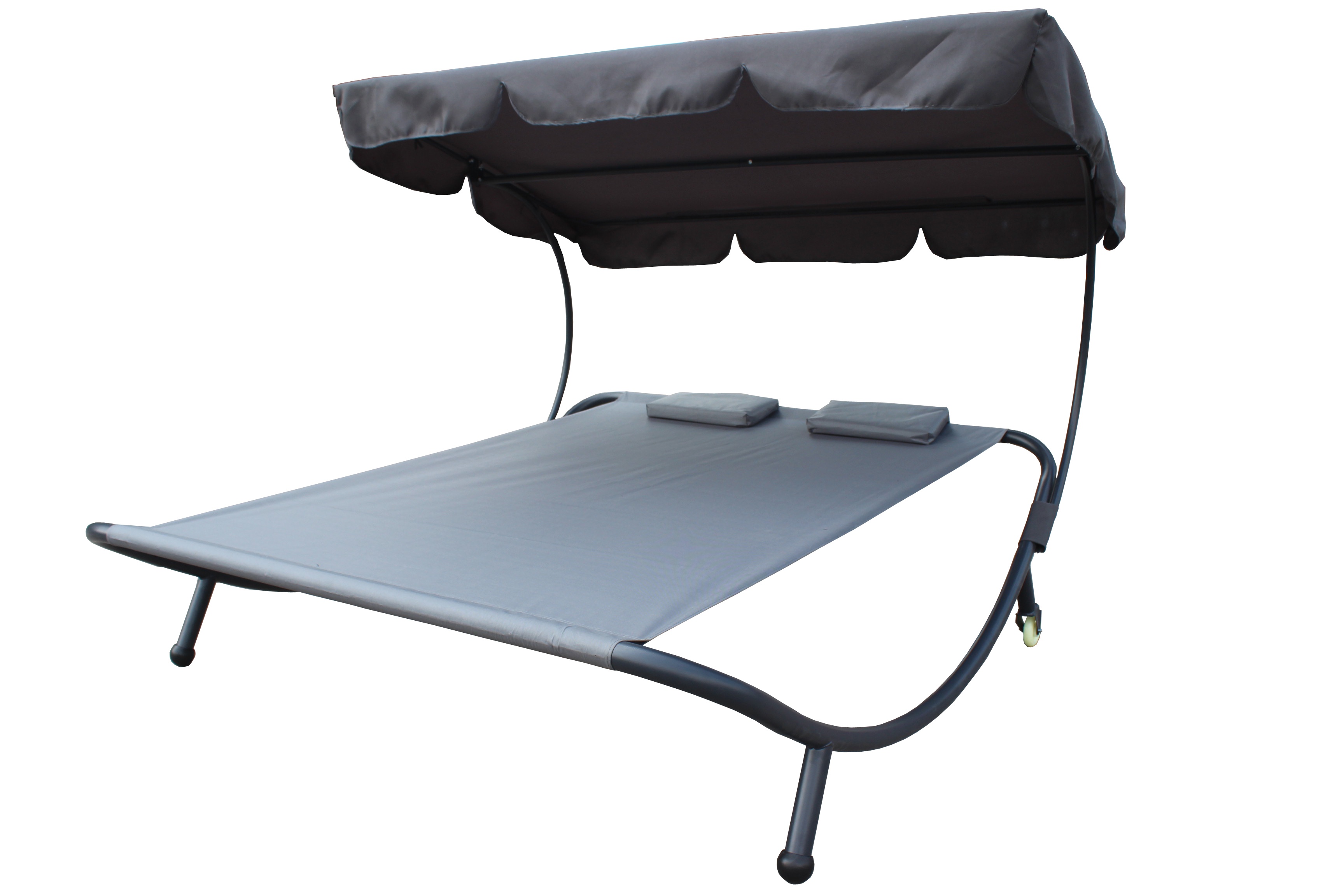 The double sun lounger is made of high quality oxford fabric, which perfectly resists the weather. The tilting canopy protects you from the sun.