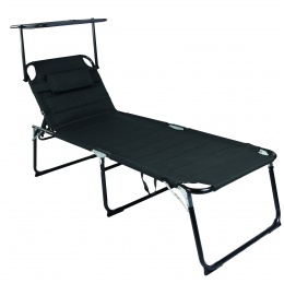 Folding garden lounger with canopy and padding and reinforced aluminum construction, in a modern design, suitable for gardens, camping or beaches.