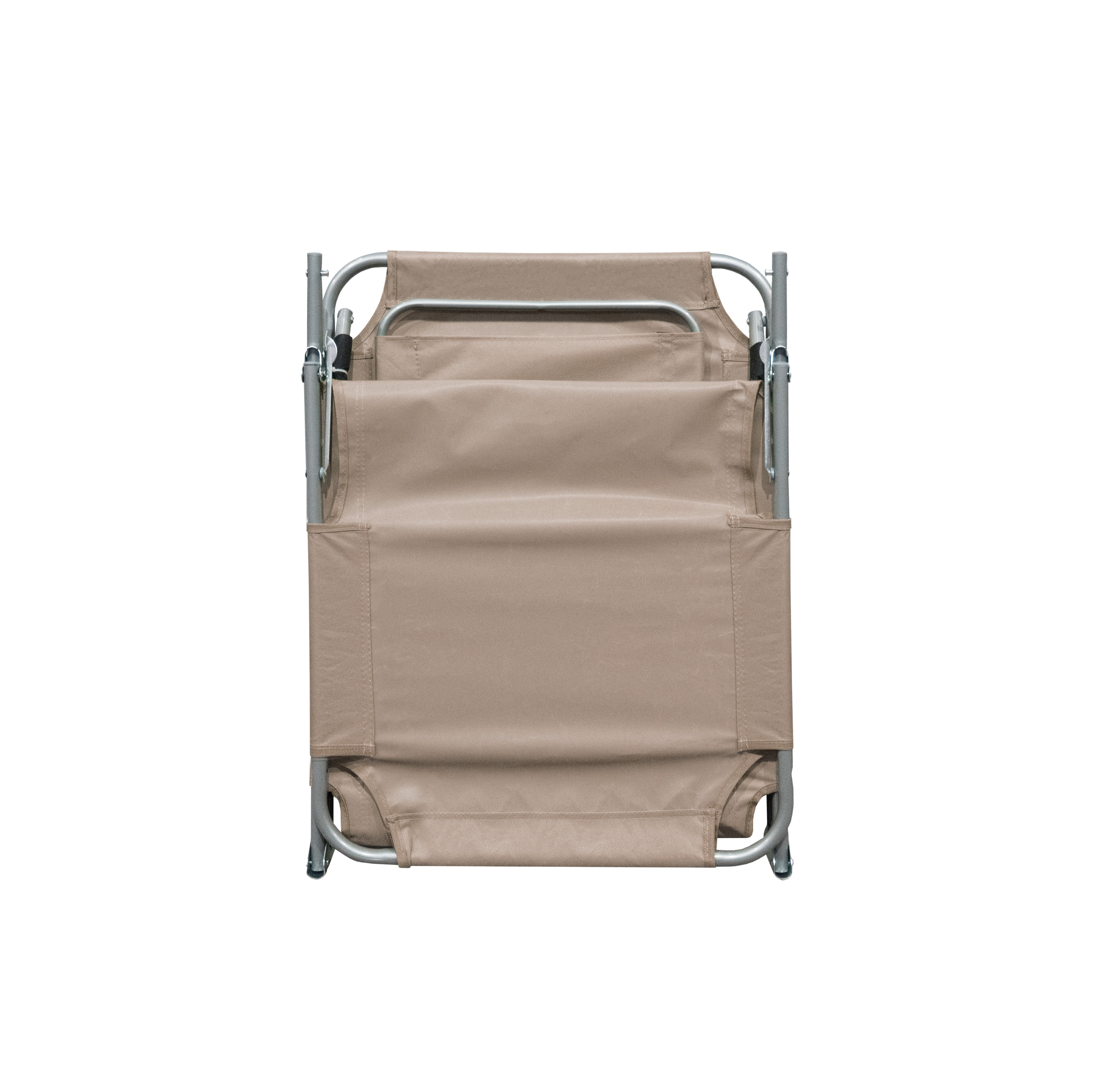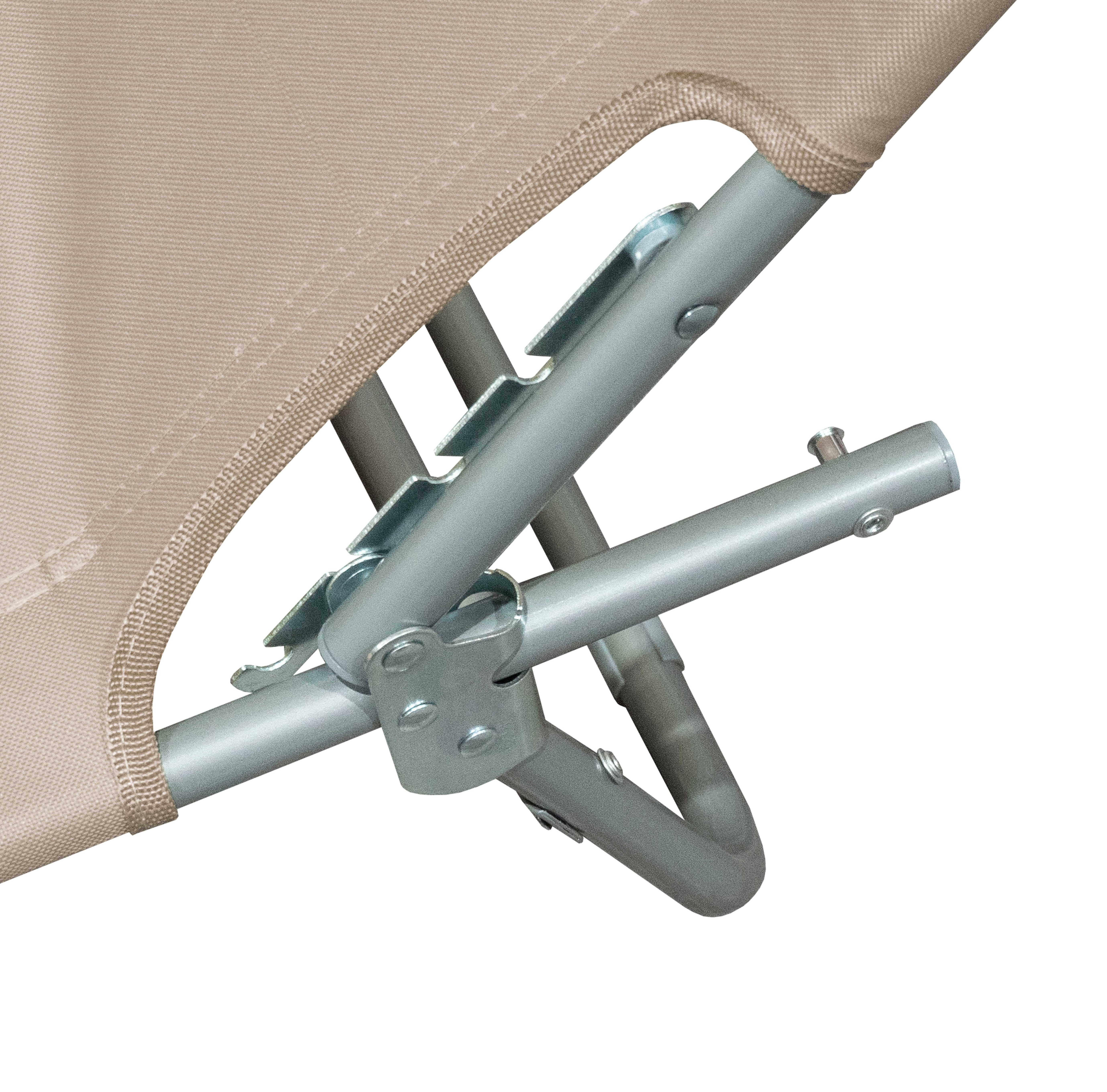 The folding structure of the lounger allows for easy unfolding and folding. Steel tubes with a diameter of 18 mm ensure high durability, strength, stability, and a load capacity of up to 150 kg.