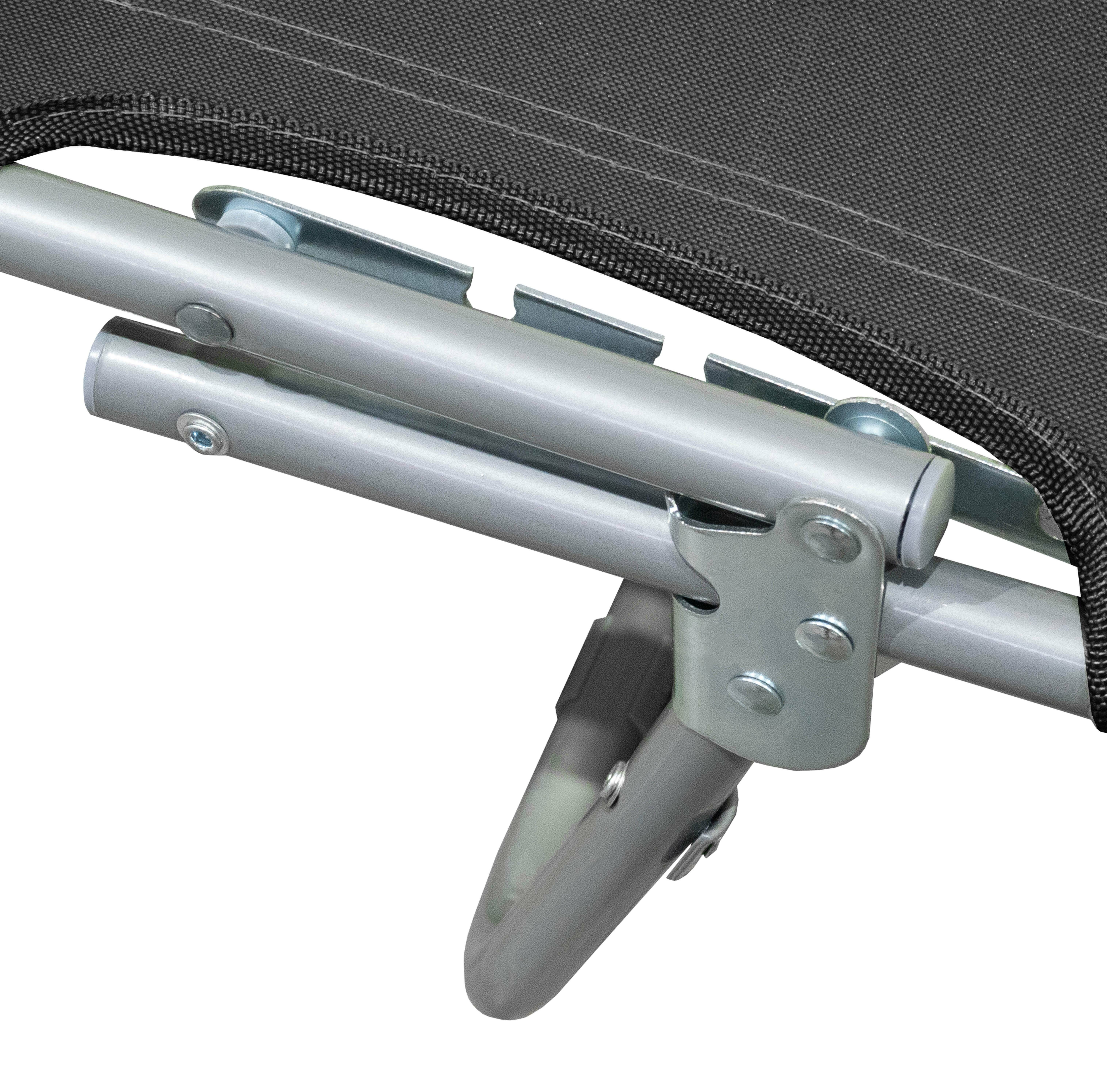 The folding structure of the lounger allows for easy unfolding and folding. Steel tubes with a diameter of 18 mm ensure high durability, strength, stability, and a load capacity of up to 150 kg.
