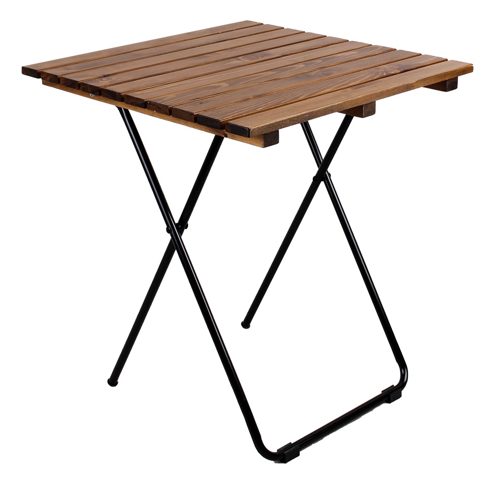 Folding garden table with a sturdy metal frame and wooden top, ideal for gardens, terraces, gazebos, balconies, but also for the interior of restaurants and cafes.