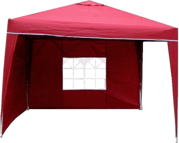 Garden gazebo equipped with a quick-folding scissor structure and two side waterproof walls with one window.