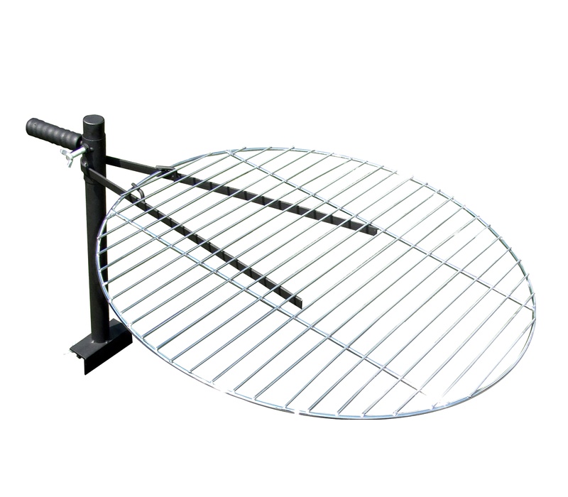 Rotating grill grate for fireplace with 60 cm diameter positioning bracket. Practical grill grate for grilling meat and vegetables, which can be easily moved out of the fireplace area.