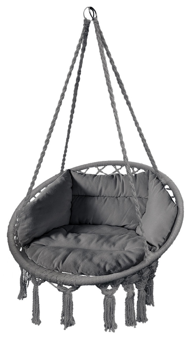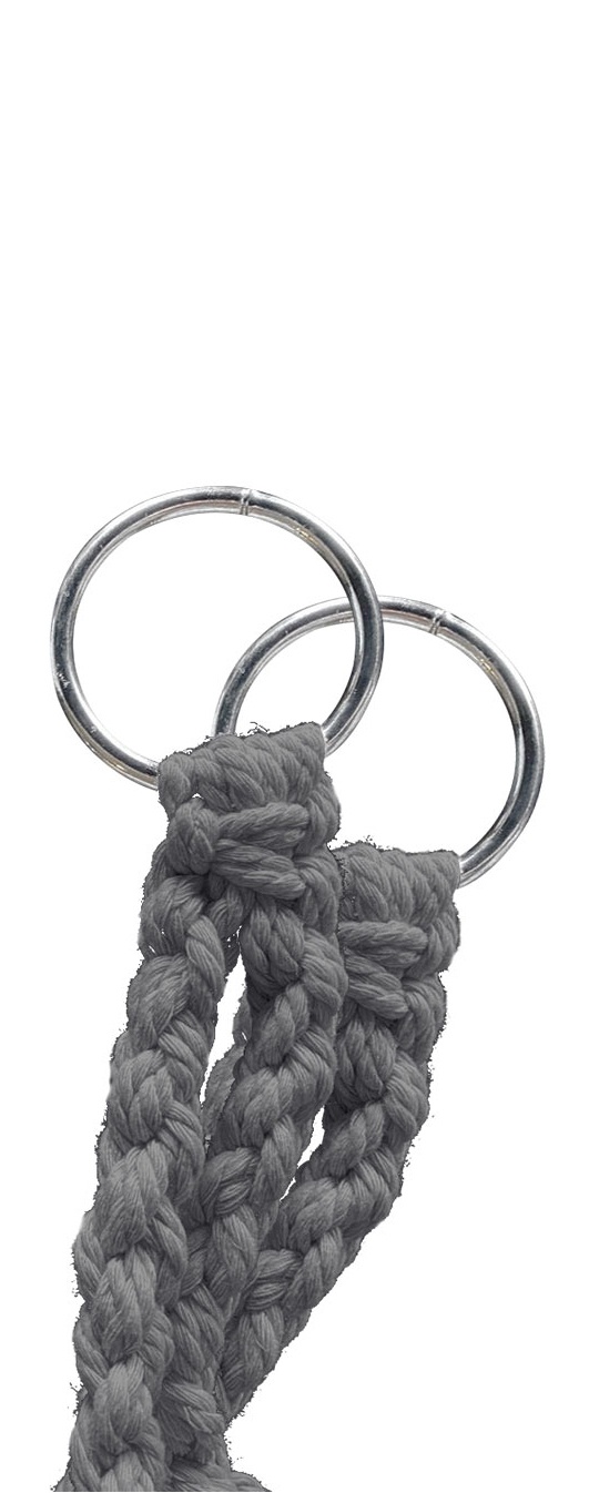 The seat part is attached with stable metal rings, so the chair can be hung almost anywhere. The seat part is made of strong braided rope.