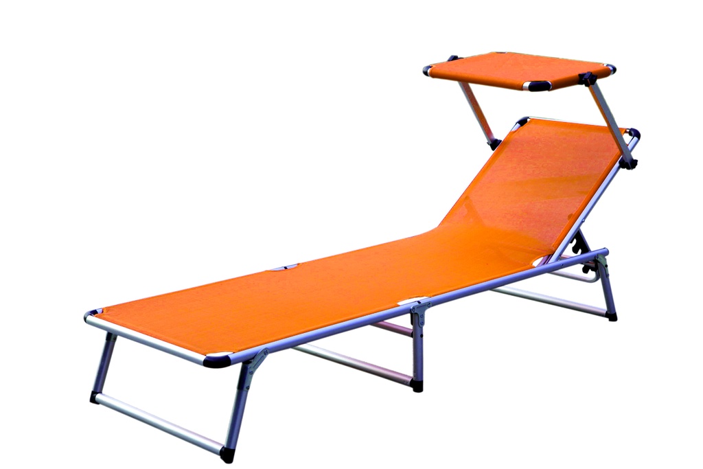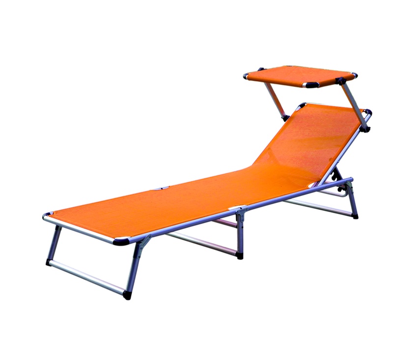 Folding garden deckchair with canopy and reinforced aluminium structure, in a modern design, suitable for gardens, camping or beaches.