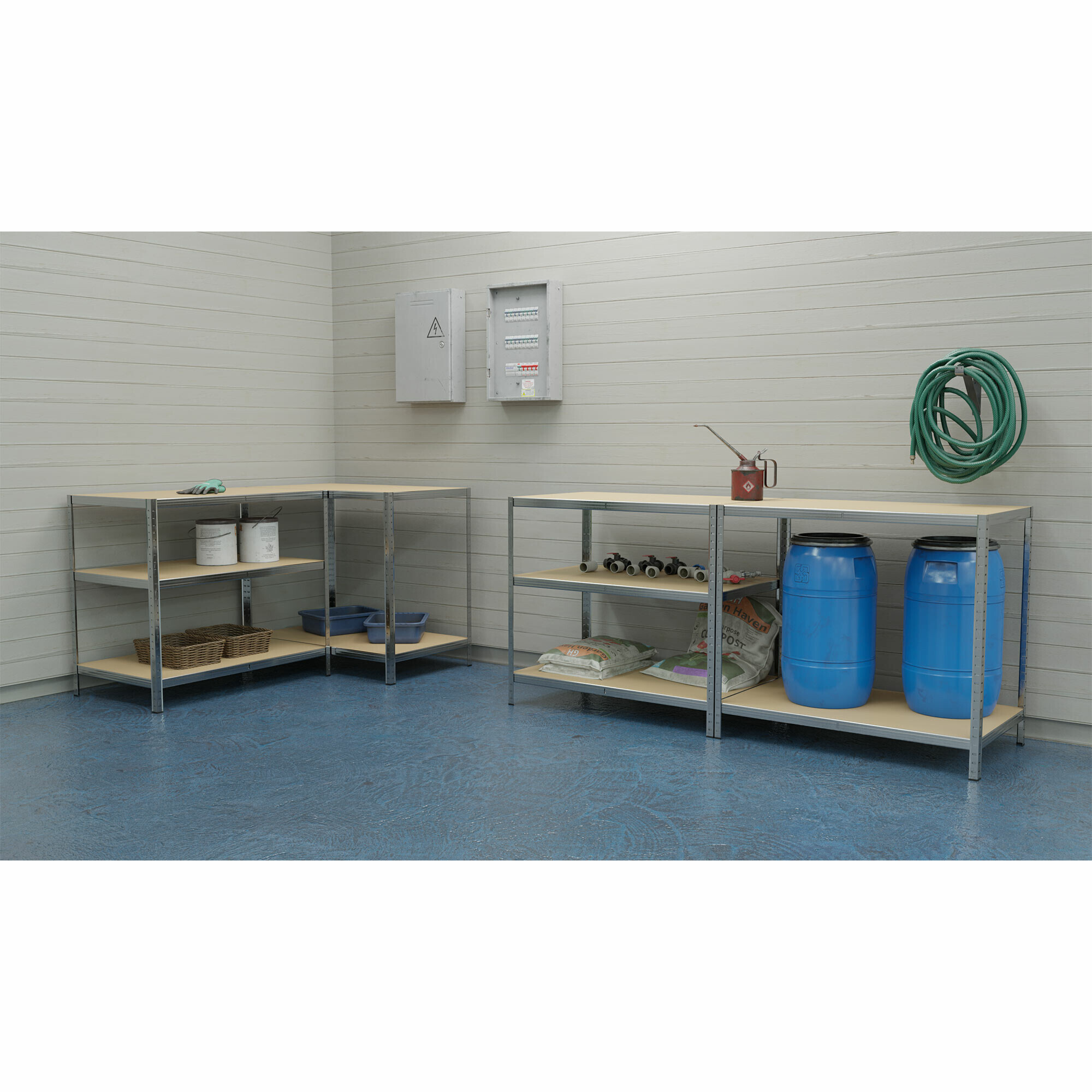 Thanks to the stable construction made of galvanized steel, it offers high durability, strength, and long lifespan. It is suitable for workshops, garages, basements, pantries, warehouses, and offices - basically anywhere a practical and durable storage shelf is needed.