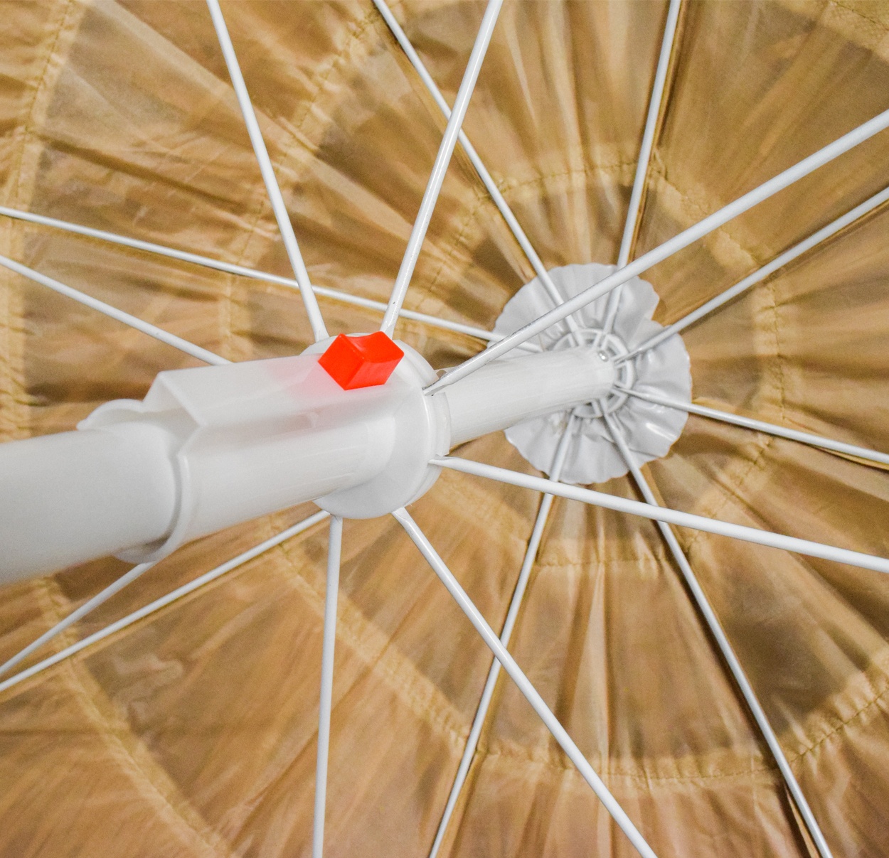 The umbrella canopy is made from several layers of polyethylene strips.With a sturdy construction and a quality cover made from durable polyester material.