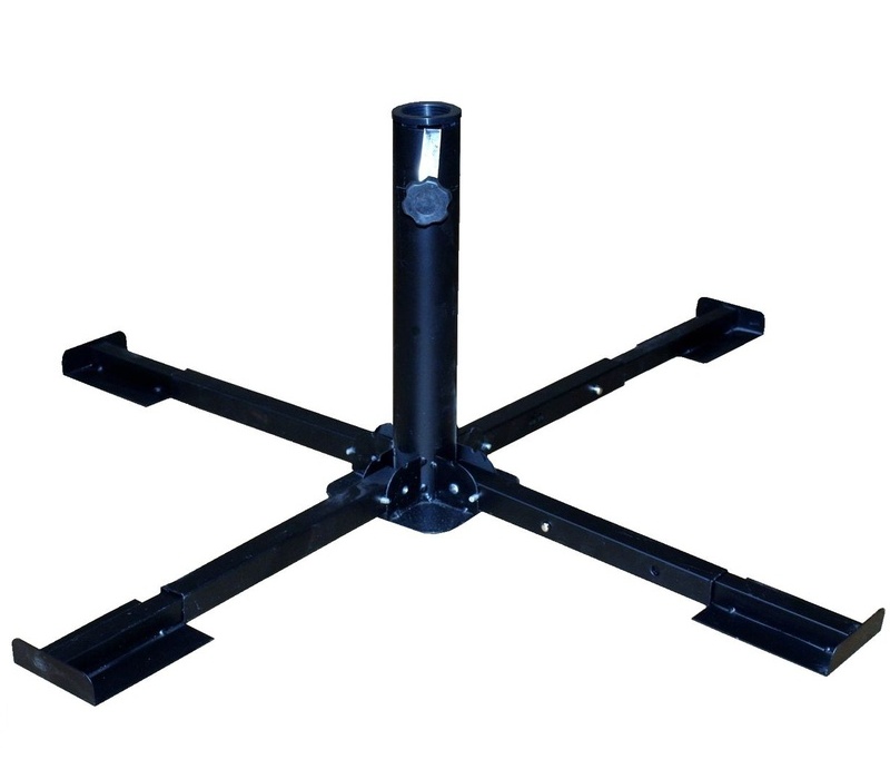 Folding universal metal stand for classic umbrellas without a base or stand.