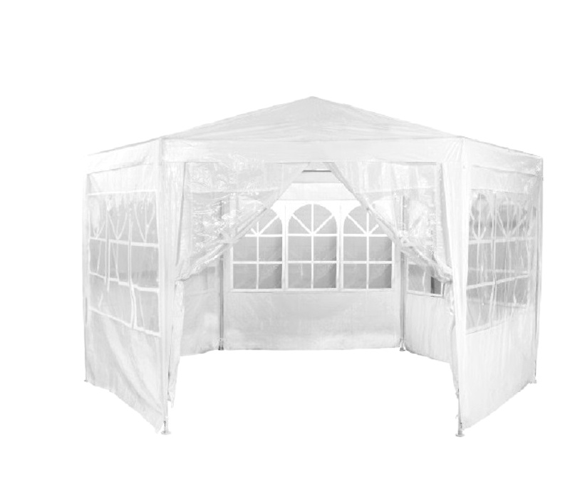 Party tent with lightweight construction, with side panels equipped with windows, made of high quality WATERPROOF fabric.