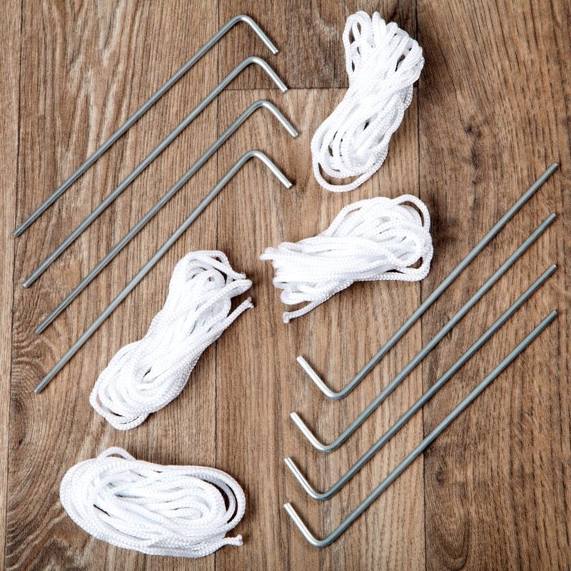 If the gazebo is to be used outdoors, it must be anchored to the ground with the standard pegs.