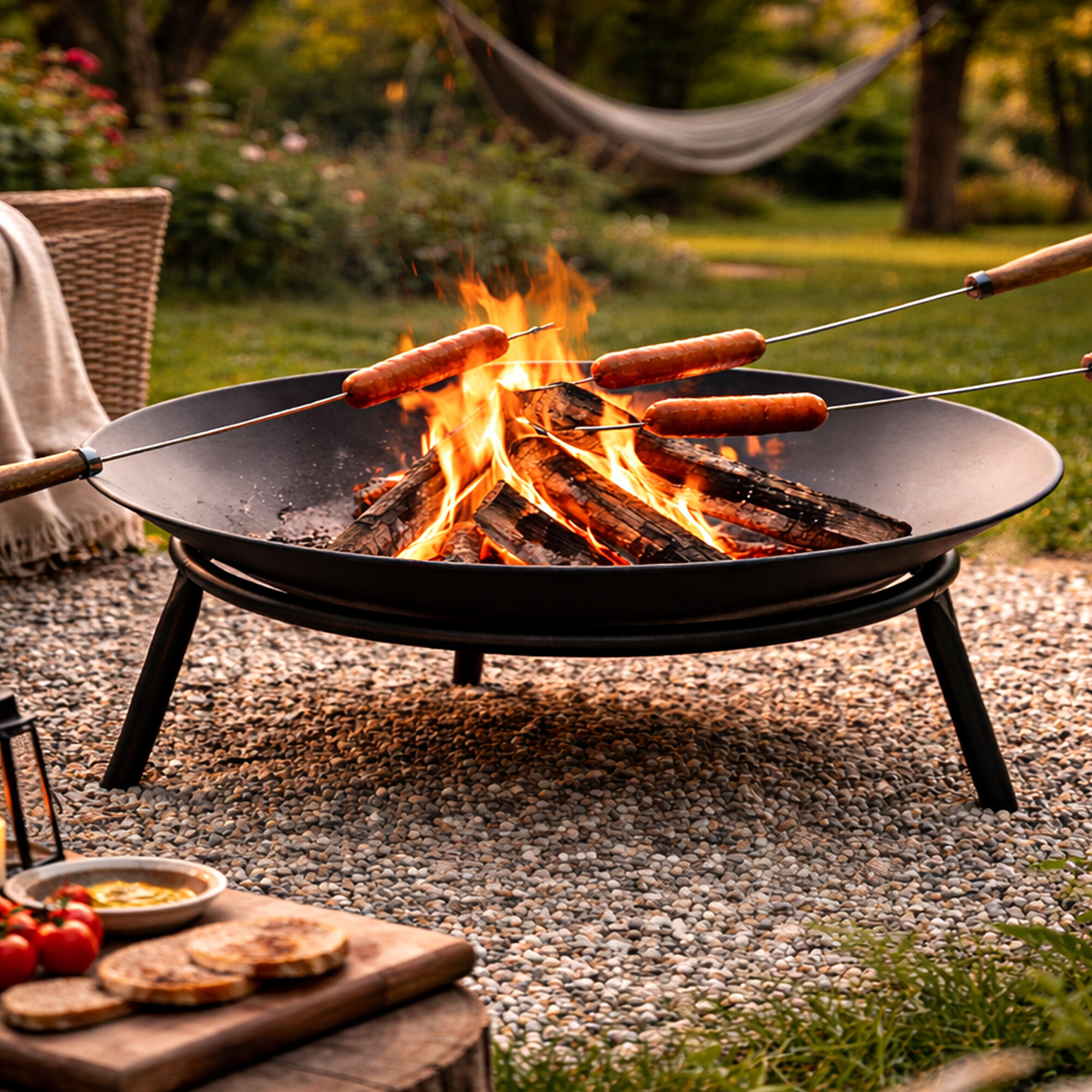 Fire is an inseparable part of moments of relaxation and gatherings with friends. The fire pit can be used not only as a source of light and heat but also for traditional roasting of sausages or, in combination with a tripod, for cooking food in a kettle.