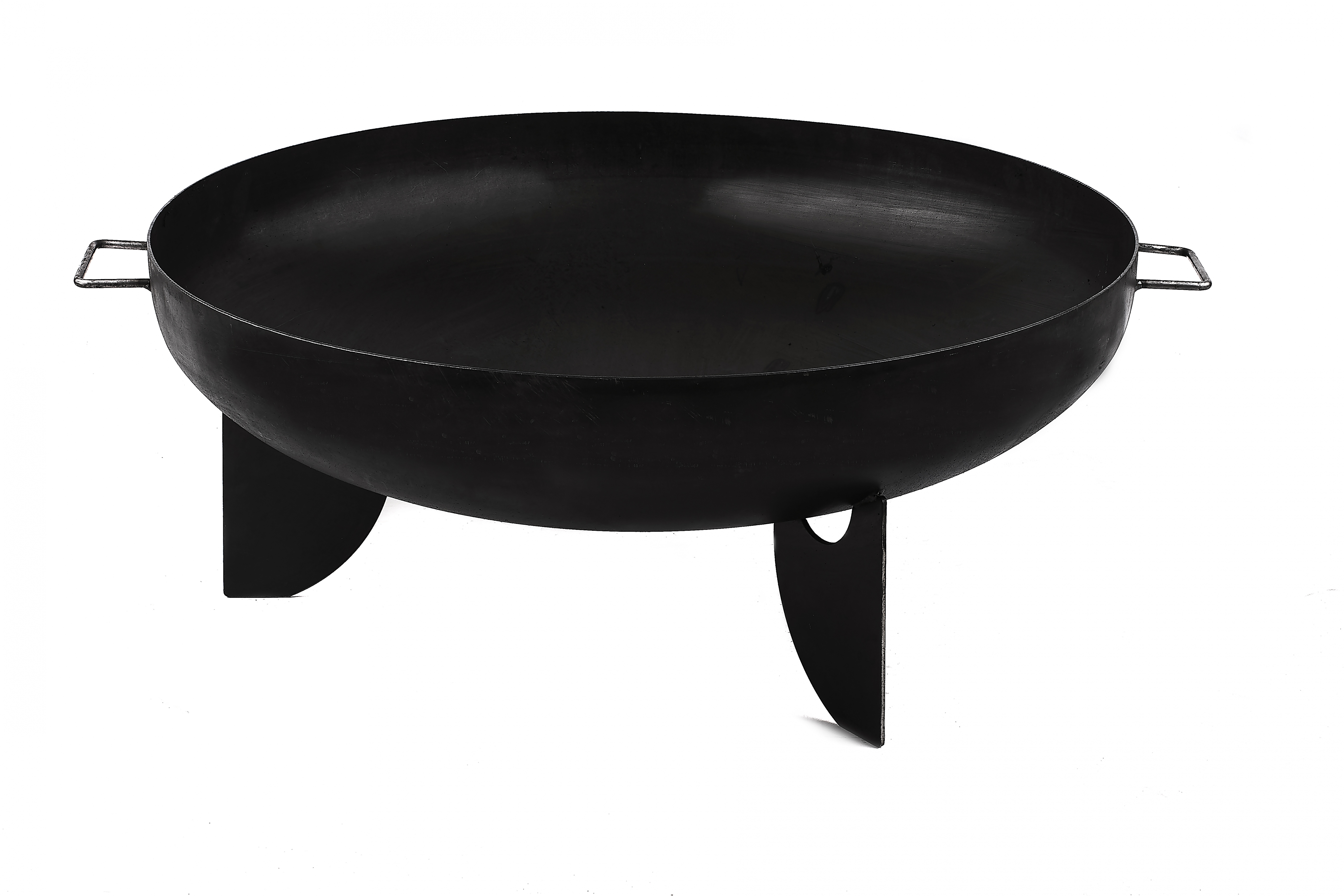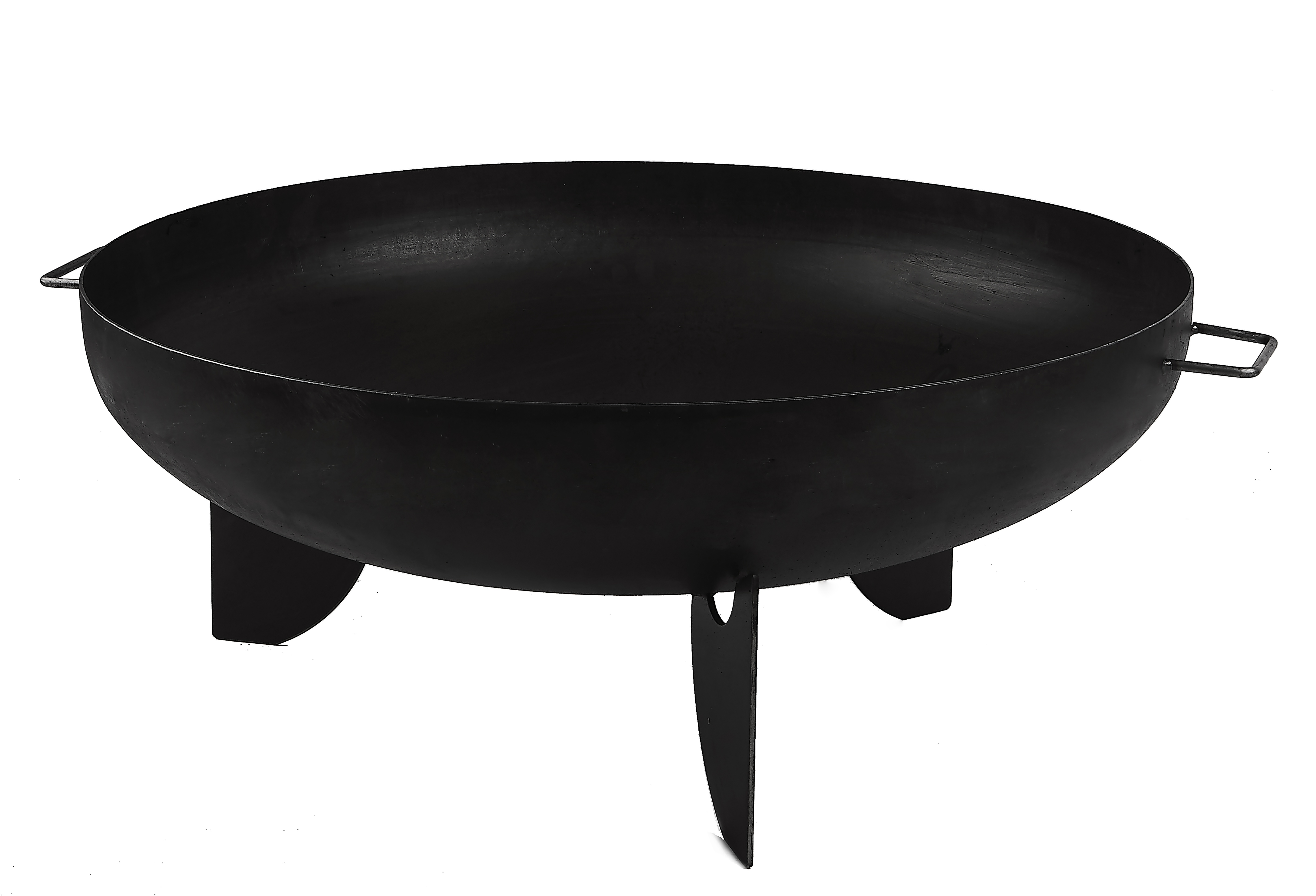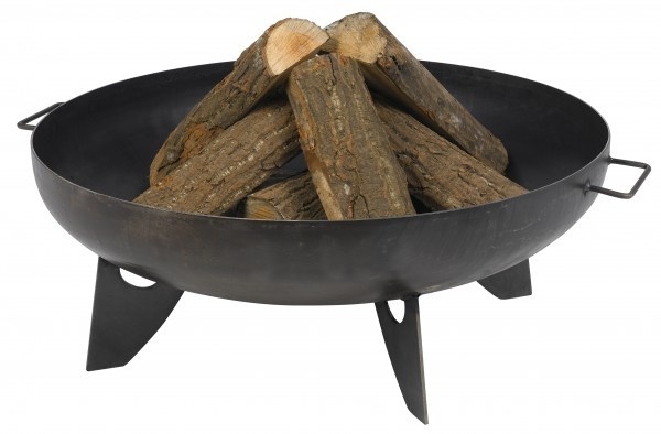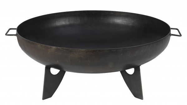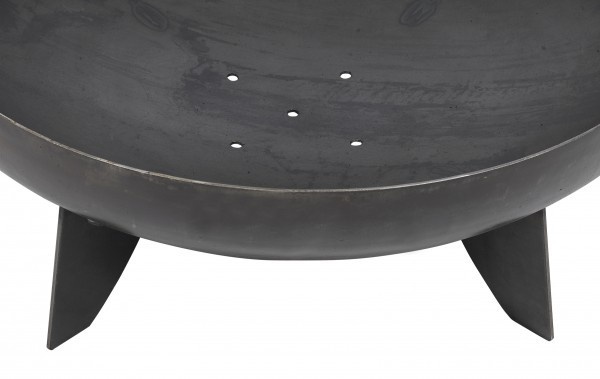 The round fireplace with a diameter of 80 cm and a bowl depth of 21 cm is made of solid steel with a thickness of approx. 2.5 mm. To guarantee maximum stability, it is equipped with three solid bases made of the same material.